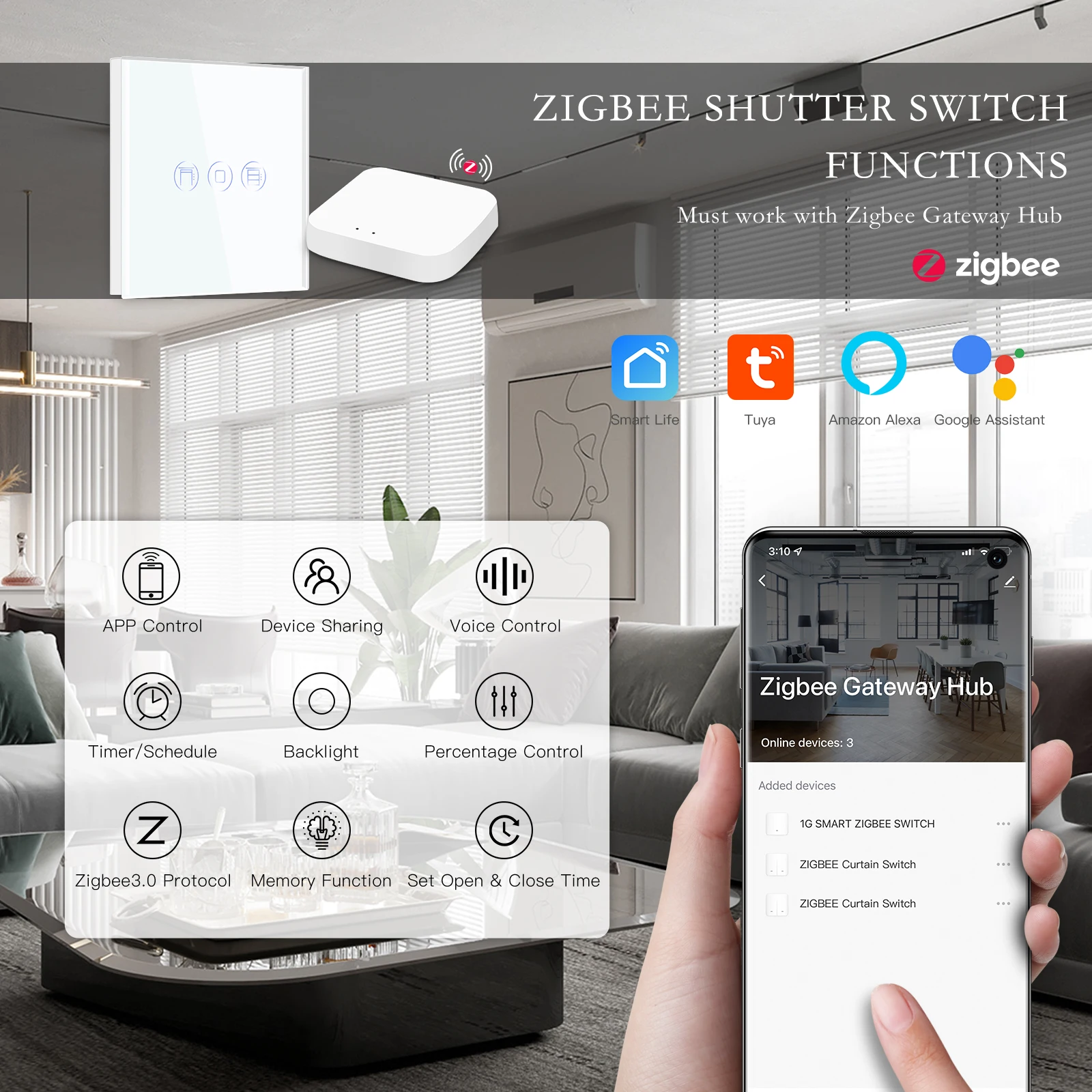 BSEED Zigbee สมาร์ทผ้าม่านสวิทช์ลูกกลิ้งไฟฟ้าชัตเตอร์สวิทช์ EU ซ็อกเก็ต USB Type-C พอร์ต Tuya Alexa Smart Life App