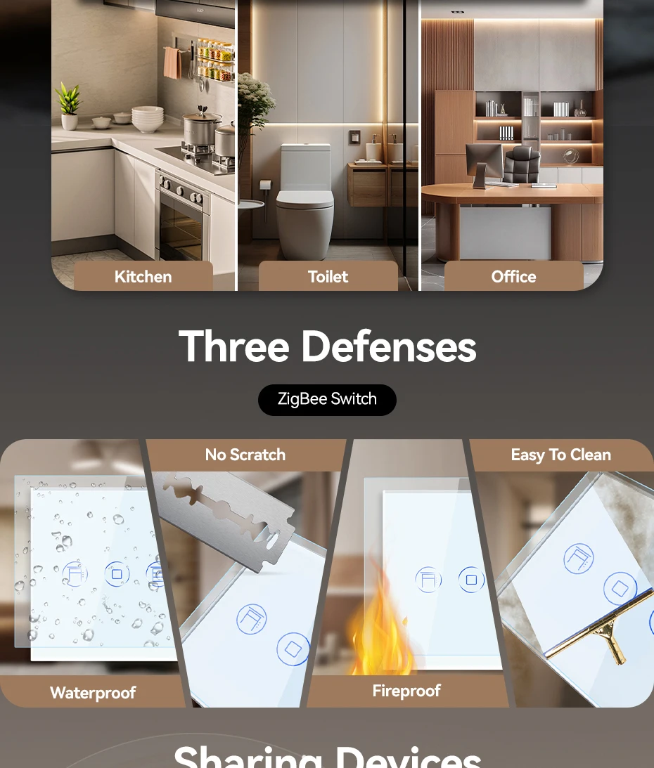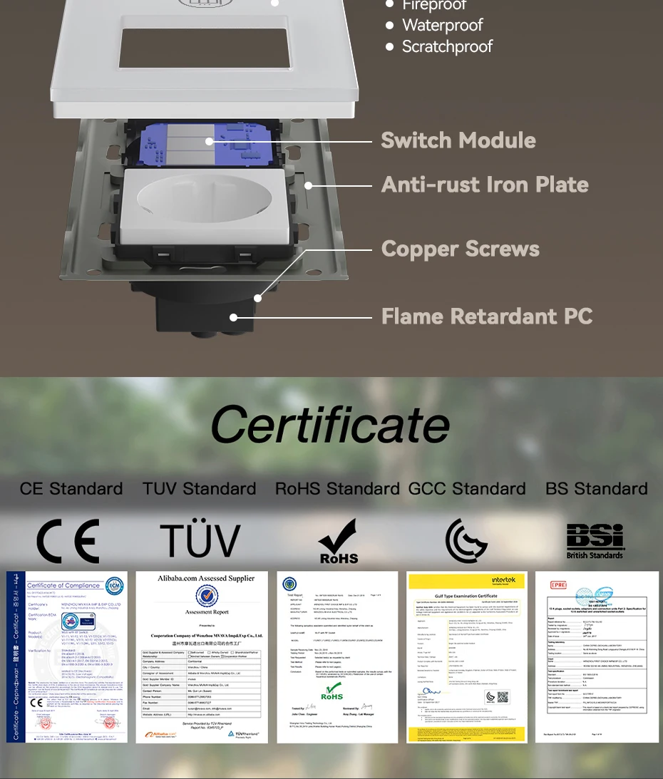 2.Our Wifi home socket and switch are Fireproof and Waterproof. Protection Against Electric Shock for Your Family.