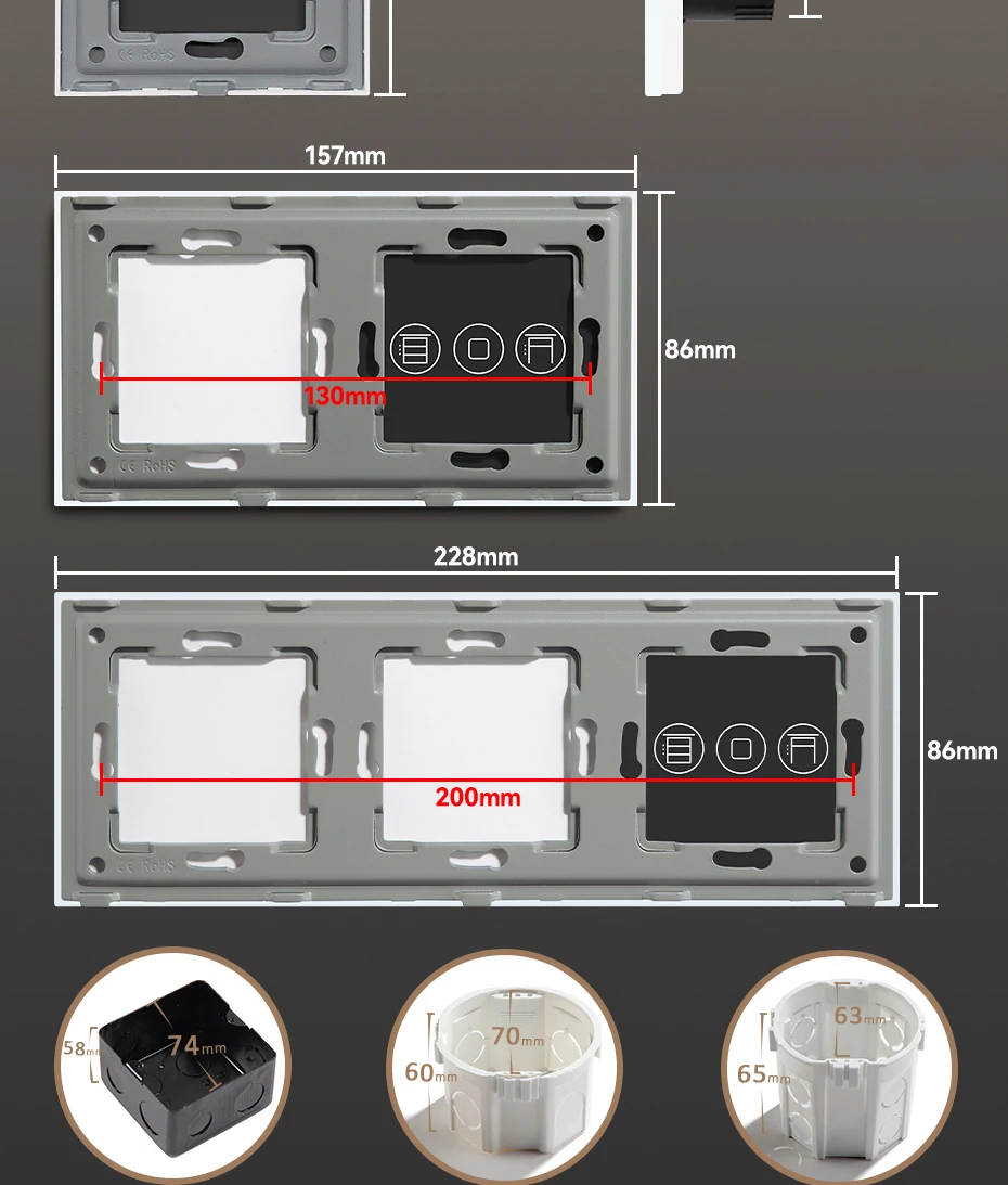 Glass Panel & Iron Plate & Plastic Switch Module |