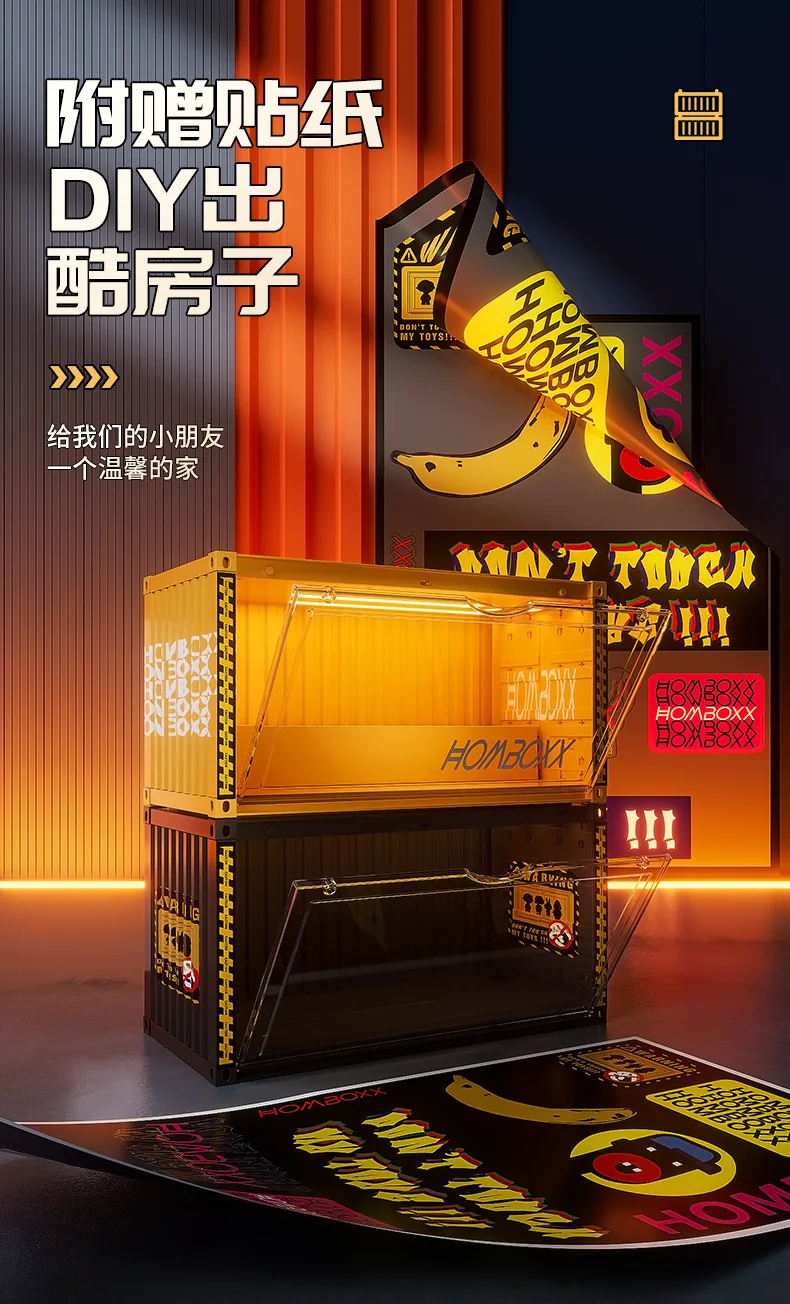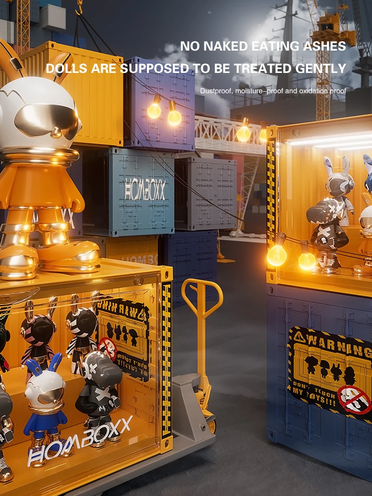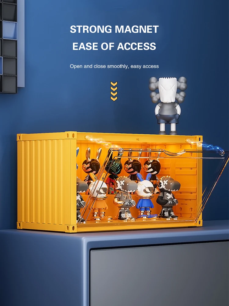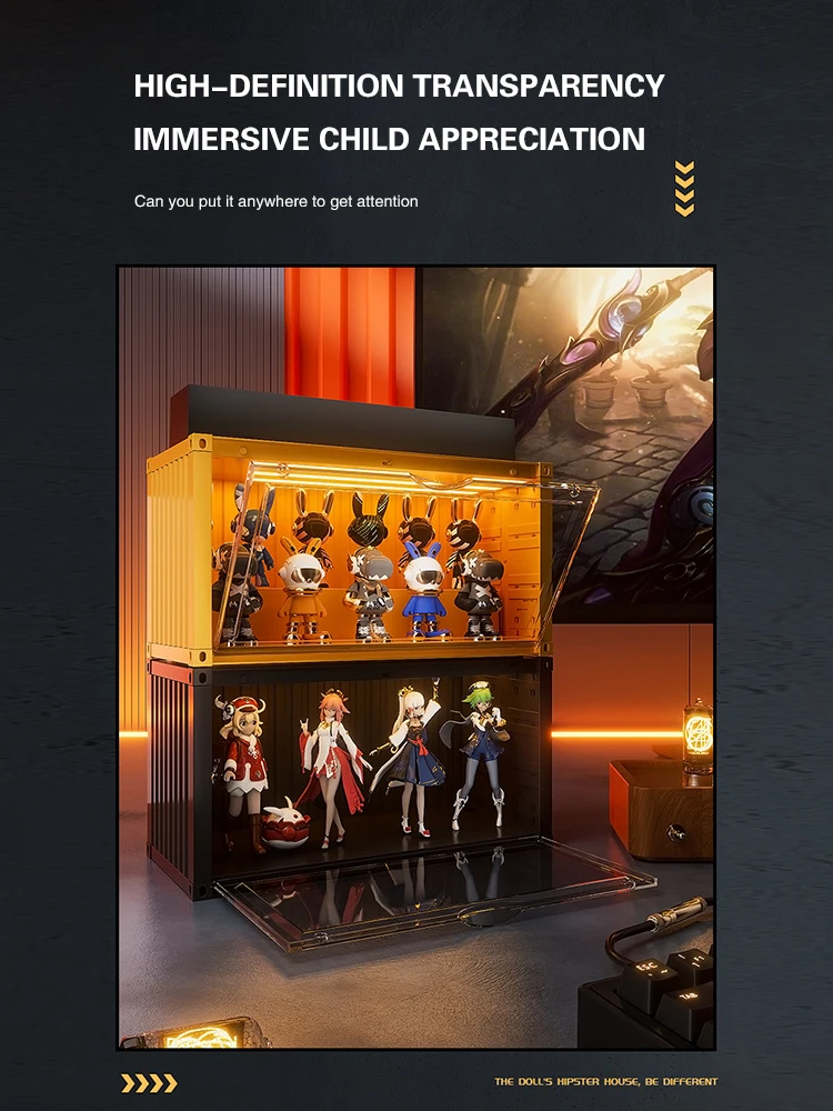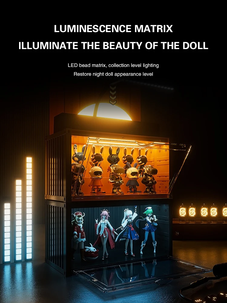 ตู้เก็บของเล่นพร้อมไฟ LED ห้องนอนโมเดลตุ๊กตาใสกันฝุ่นตู้เก็บของเล่นชั้นวางจัดระเบียบ