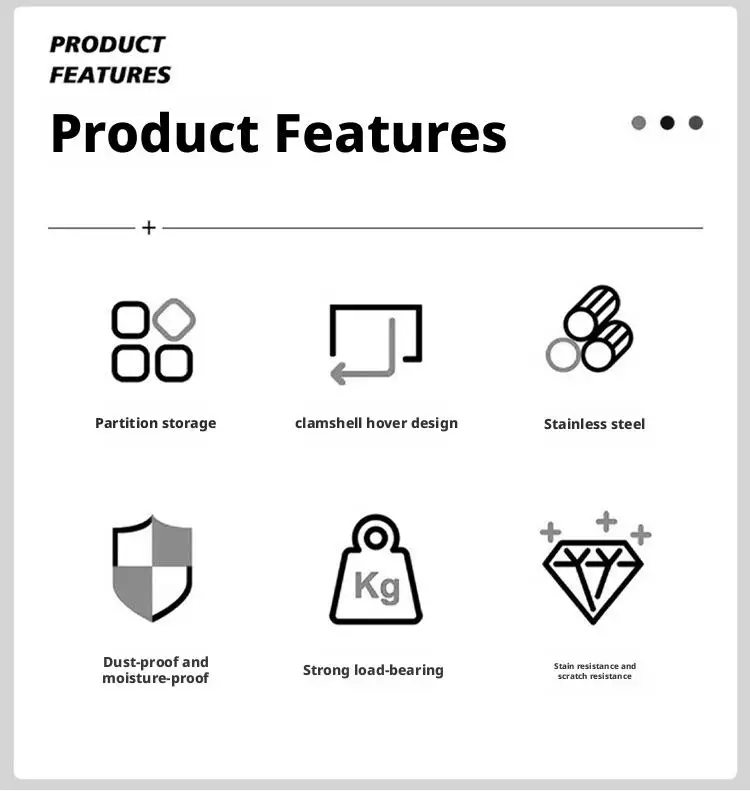 1.กล่องเก็บเครื่องใช้บนโต๊ะอาหารและชั้นวางมักจะได้รับการออกแบบให้มีหลายระดับและฉากกั้น ซึ่งสามารถจัดประเภทและจัดเก็บเครื่องใช้บนโต๊ะอาหารต่างๆ เพื่อให้สามารถใช้พื้นที่ห้องครัวได้อย่างเต็มที่