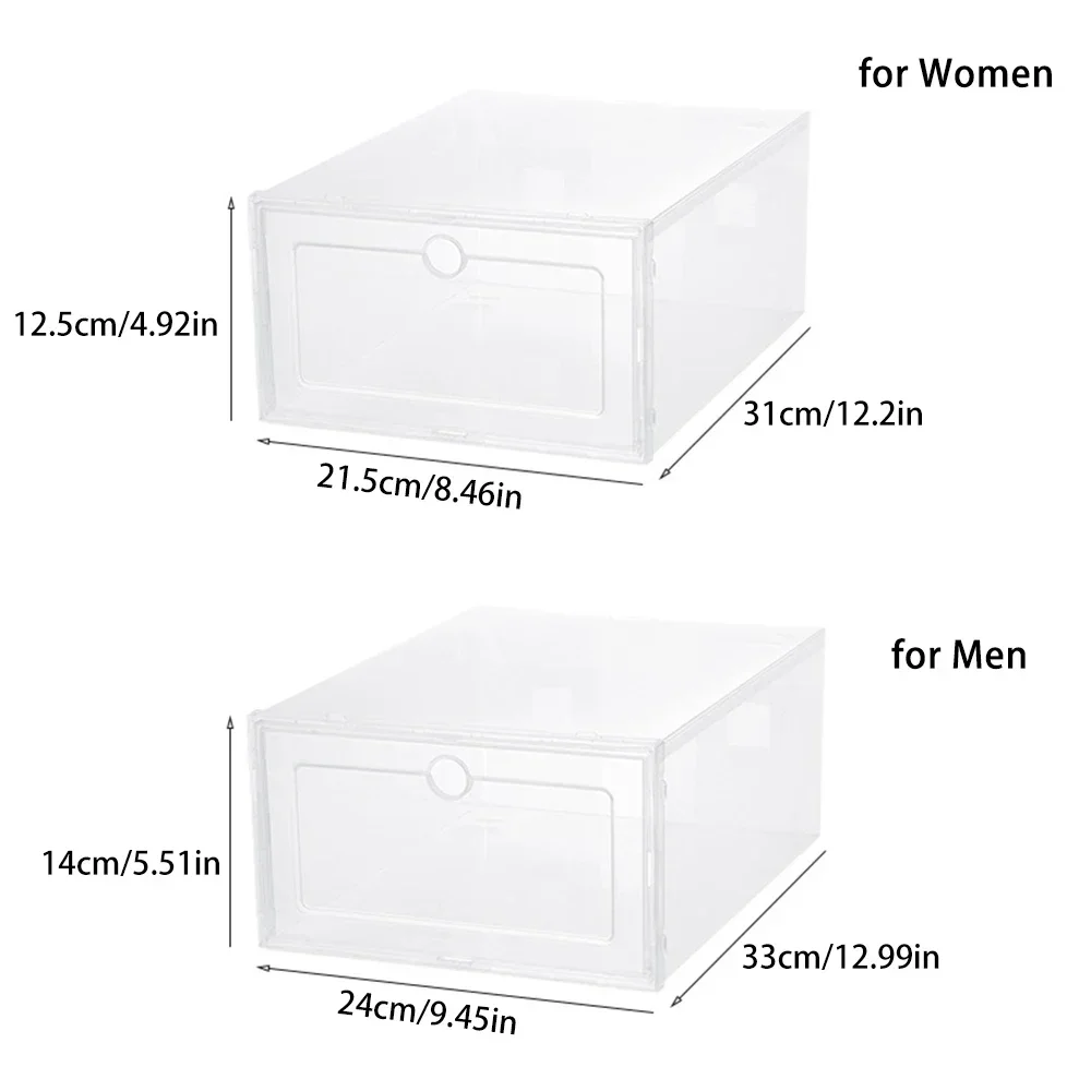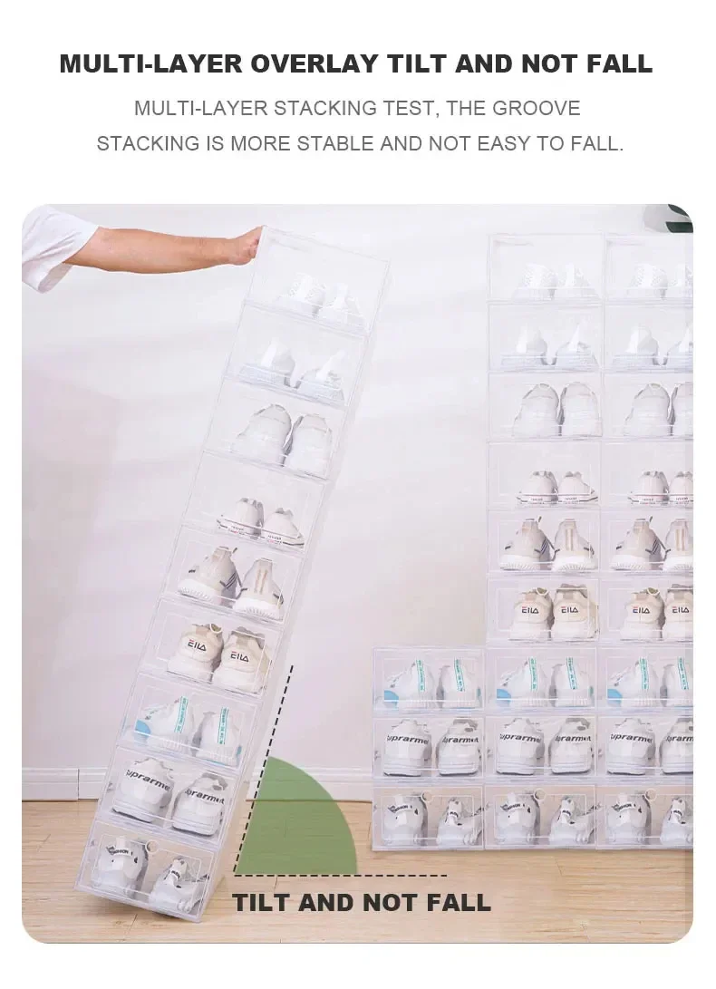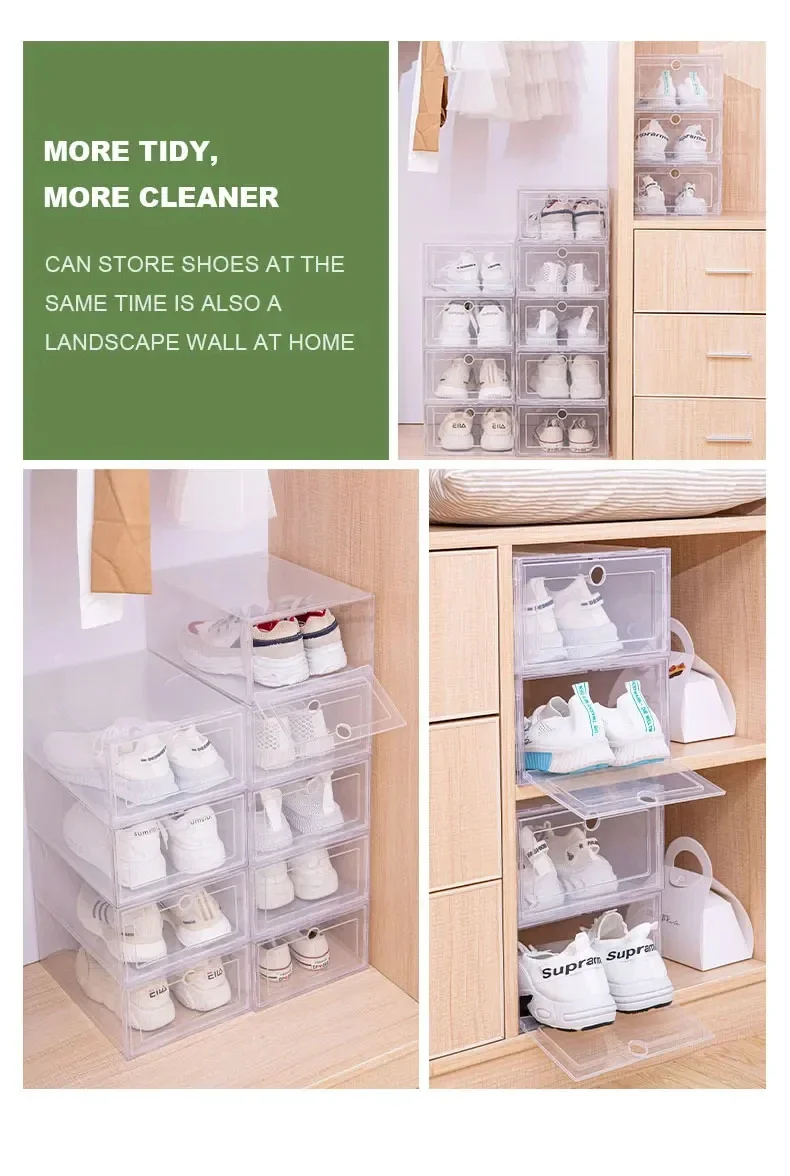 6 ชิ้นโปร่งใสหนากล่องรองเท้าป้องกันฝุ่นความชื้นบ้านกล่องเก็บรองเท้าพับรองเท้า STACKABLE รองเท้า