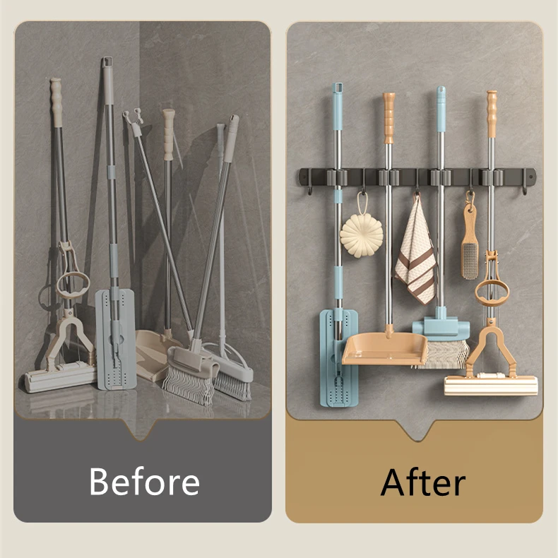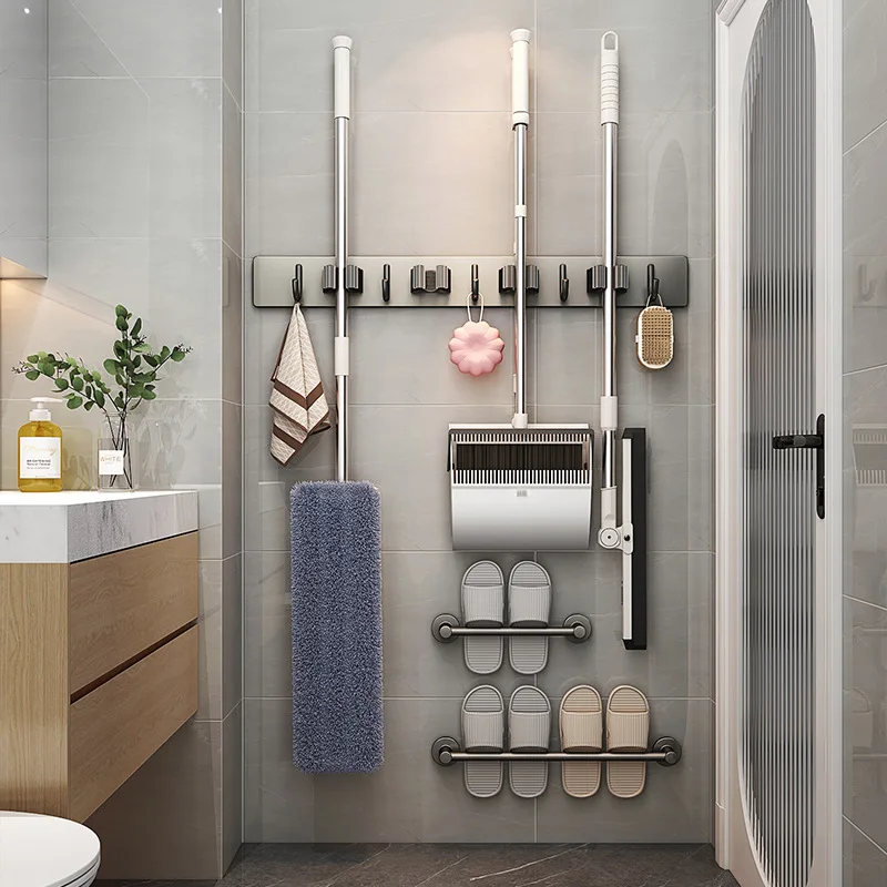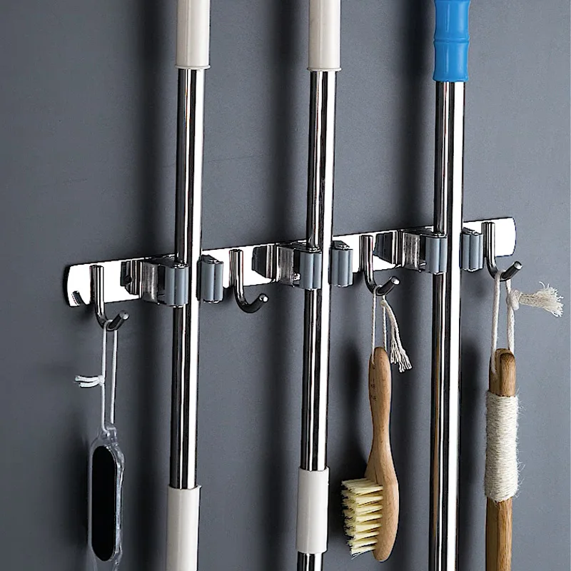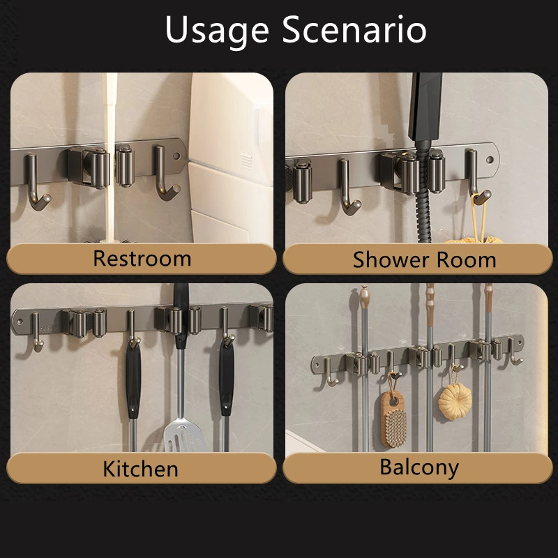 ไม้กวาด Mop ผู้ถือสแตนเลส Mop Storage Rack ติดผนังโรงรถบ้านห้องน้ํา Organizer Non-SLIP Mops Organizer