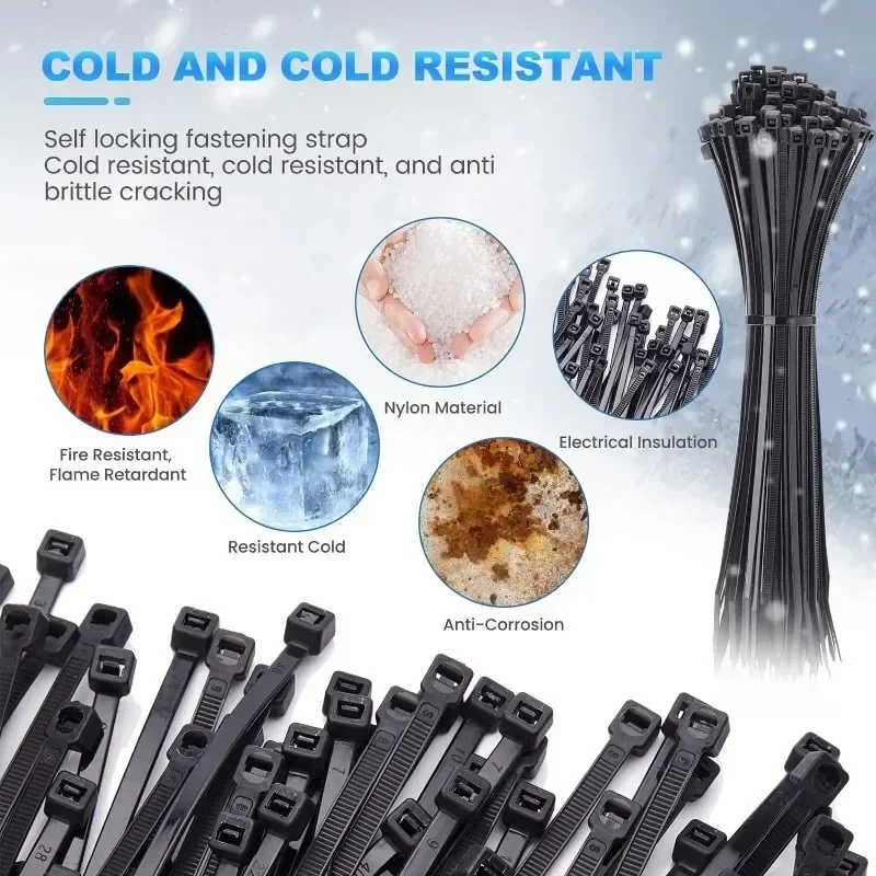 สายรัดเคเบิลไนลอนแบบล็อคอัตโนมัติ 1000/100 ชิ้น สายรัดปรับได้ ตัวล็อคพลาสติก ทนความร้อน