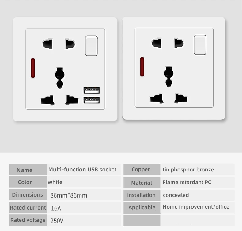 เต้ารับติดผนังสีขาว EU มาตรฐานปลั๊กไฟพื้นผิววินเทจปลั๊กไฟพลาสติกหน่วงไฟ