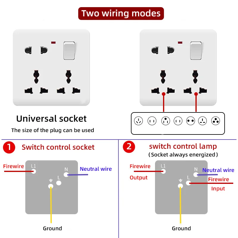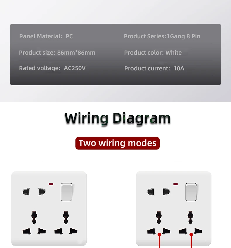 เต้ารับติดผนังแบบ 86 พร้อมการชาร์จเร็ว USB-C | ปลั๊กไฟแบบหลายพอร์ต 5-in-1 | แผงไฟฟ้าติดผนังแบบโมเดิร์น 110~250V สำหรับบ้านและสำนักงาน