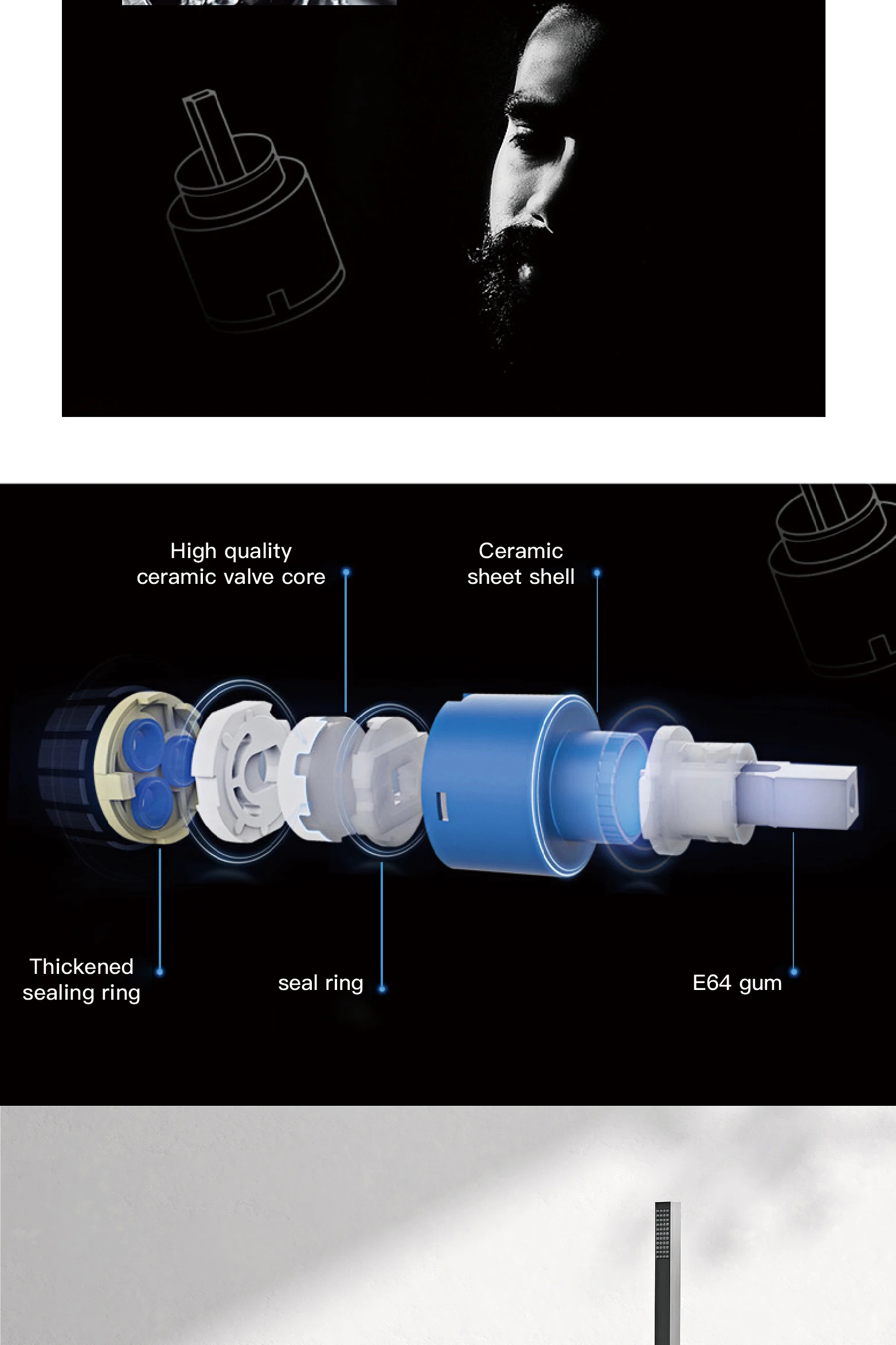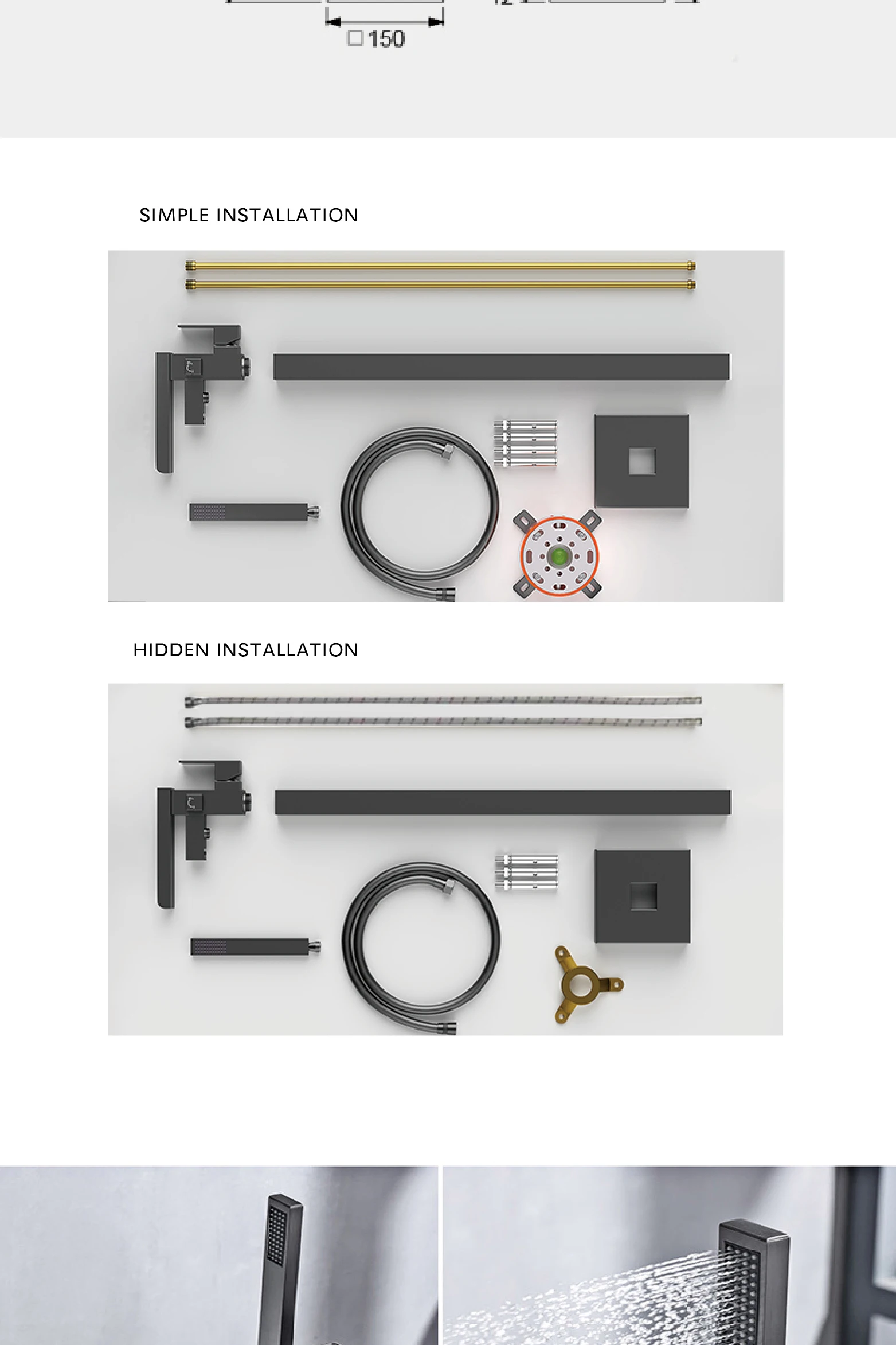 สีดําทองห้องน้ําชุดฝักบัวทองเหลืองร้อนเย็นห้องน้ําระบบก๊อกน้ําอุปกรณ์เสริมสแควร์หัวฝักบัว