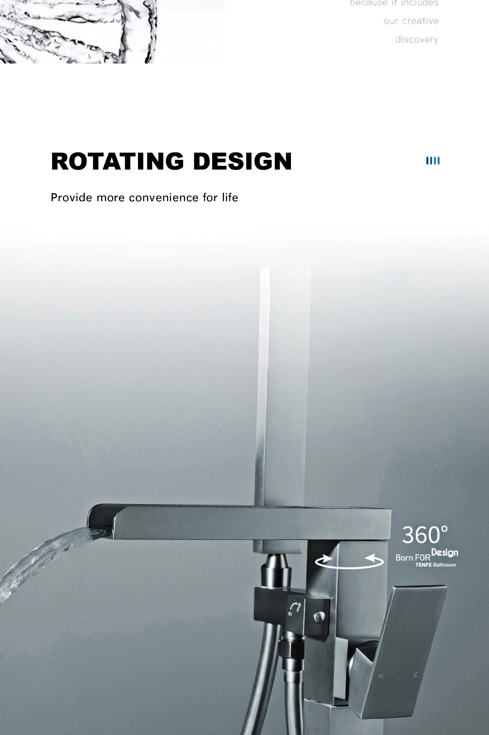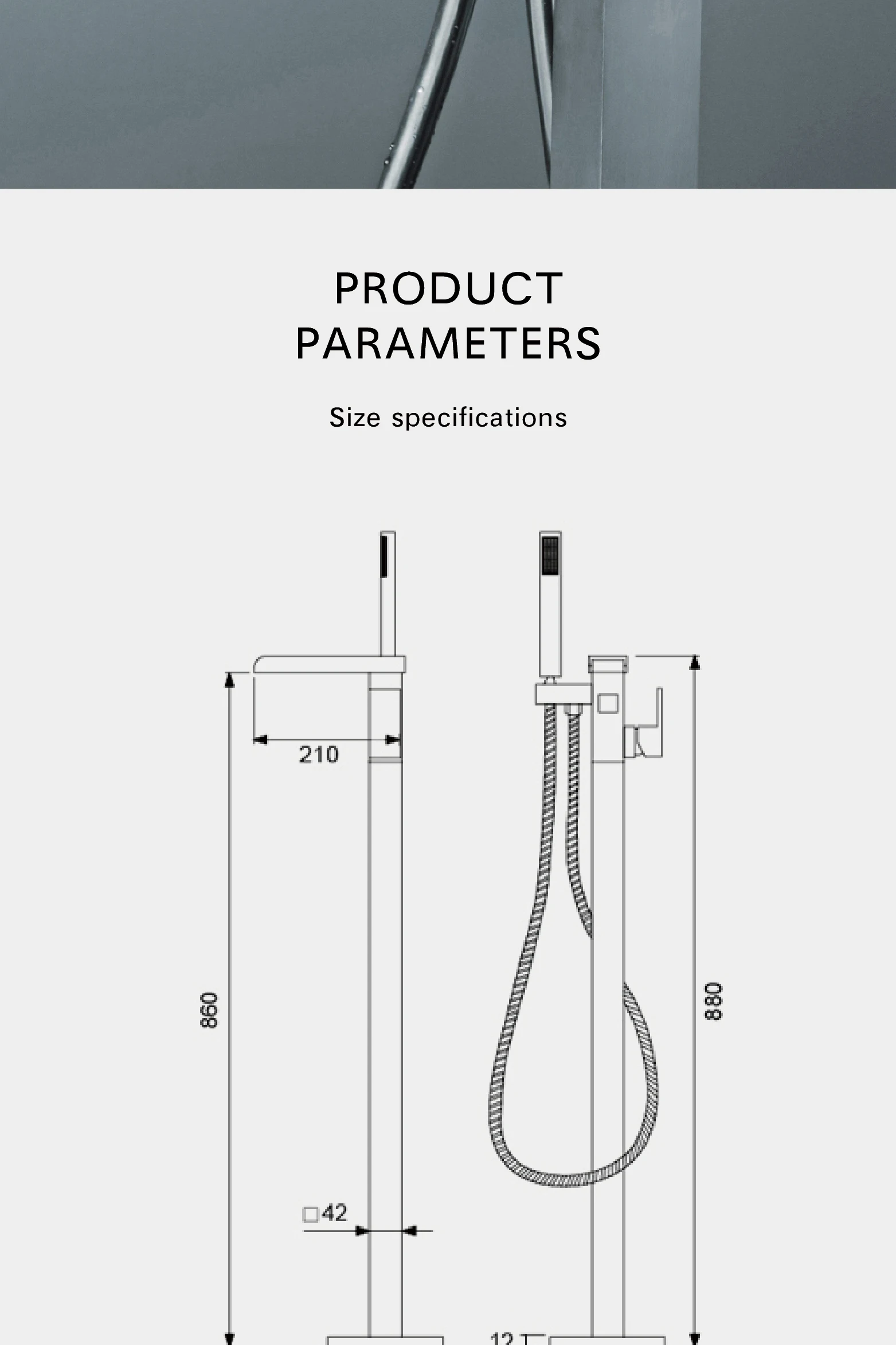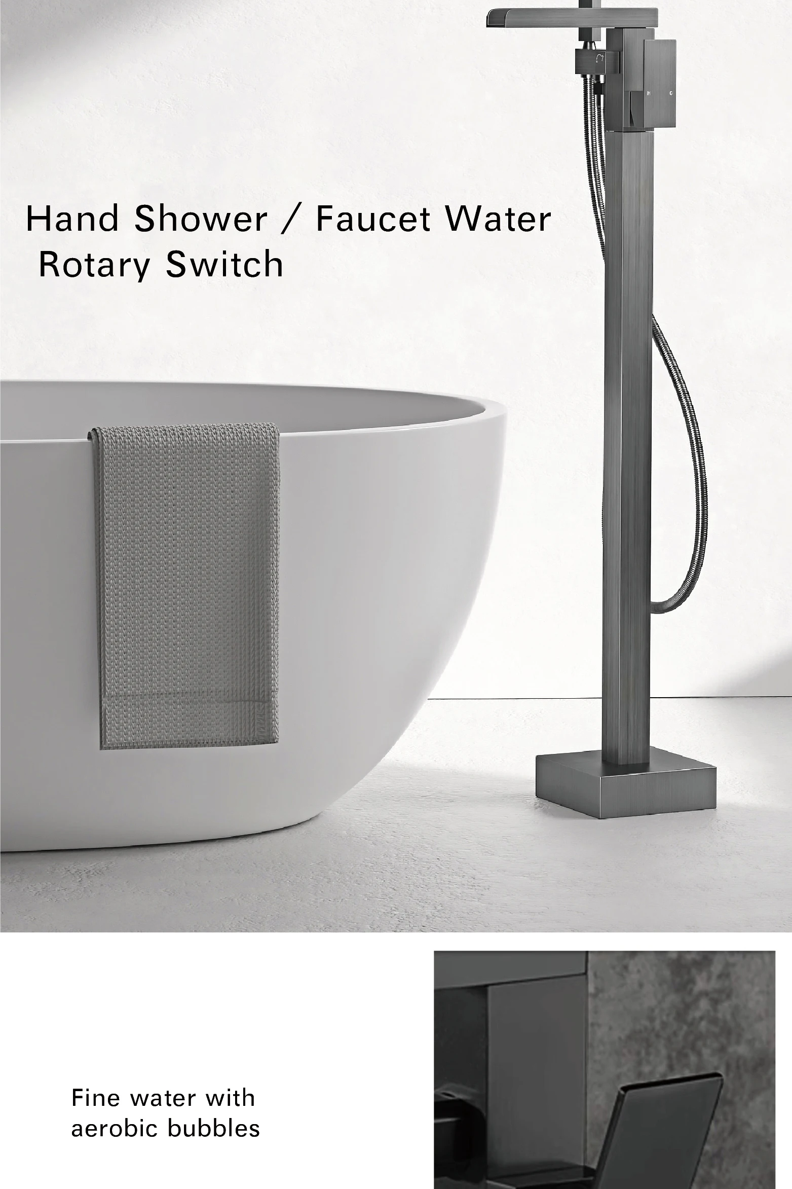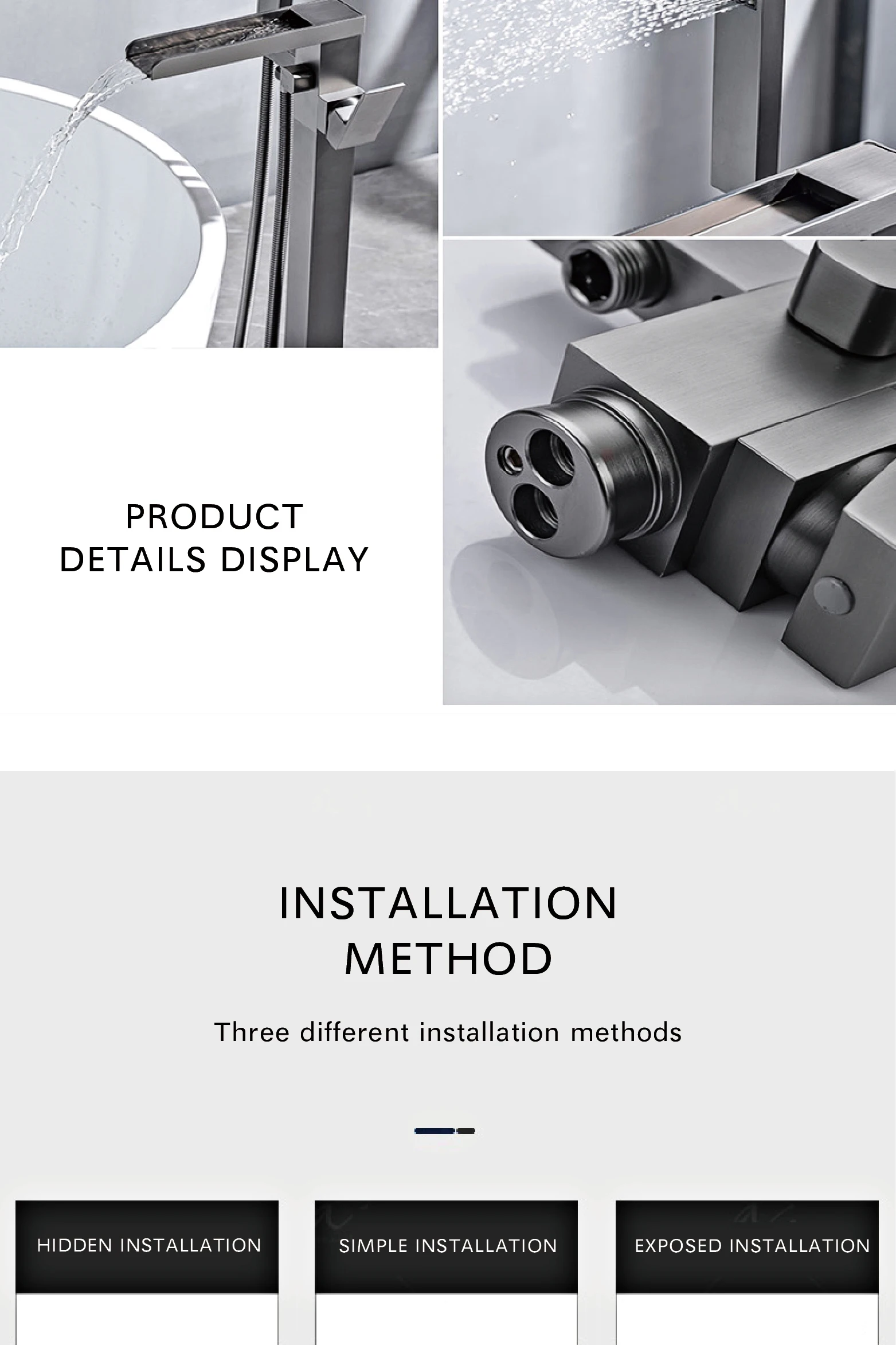 AITANA ก๊อกน้ําห้องน้ําตั้งพื้นทองเหลืองสีดําหรูหราพร้อมดีไซน์ช่องน้ําตก เครื่องผสมอ่างอาบน้ําร้อนและเย็น