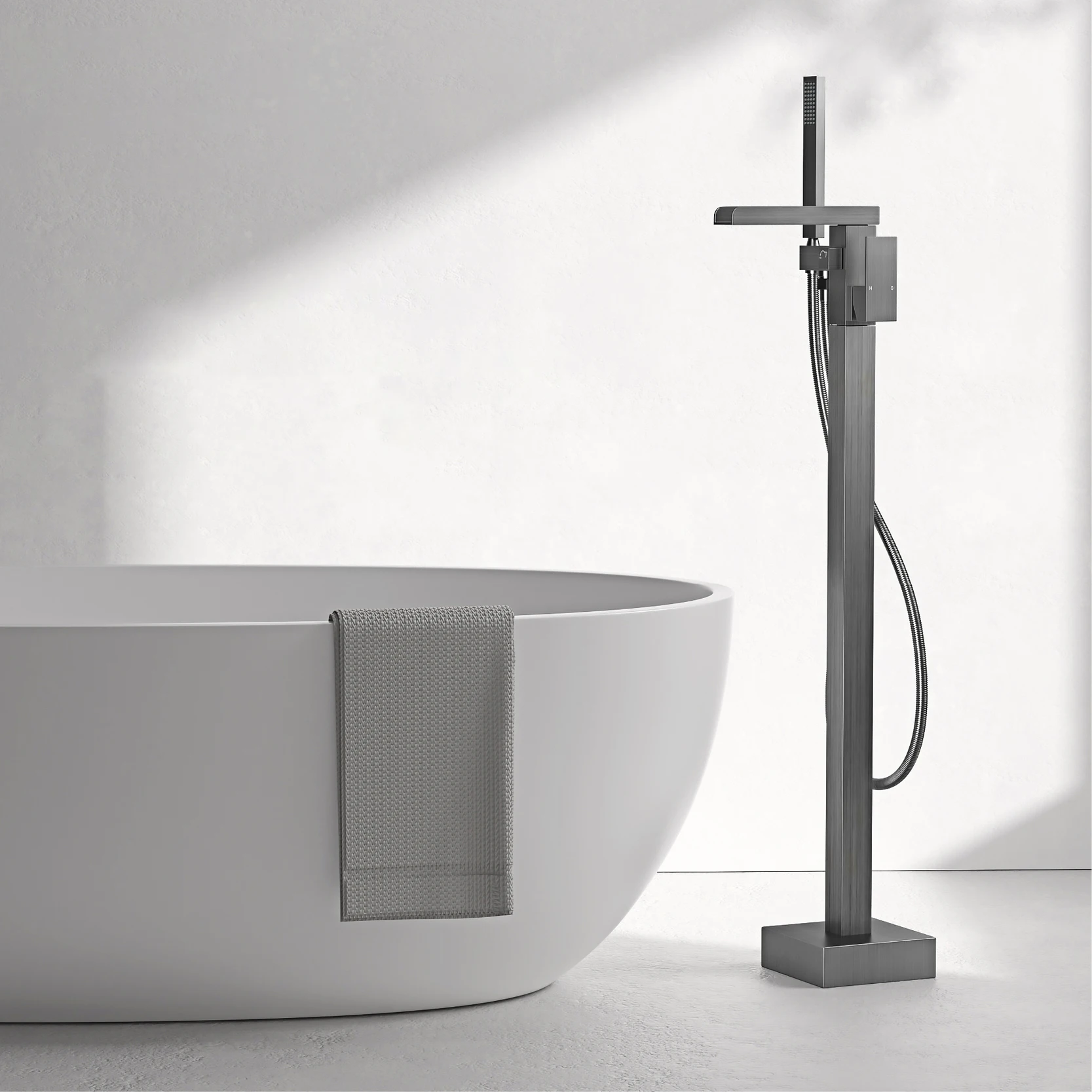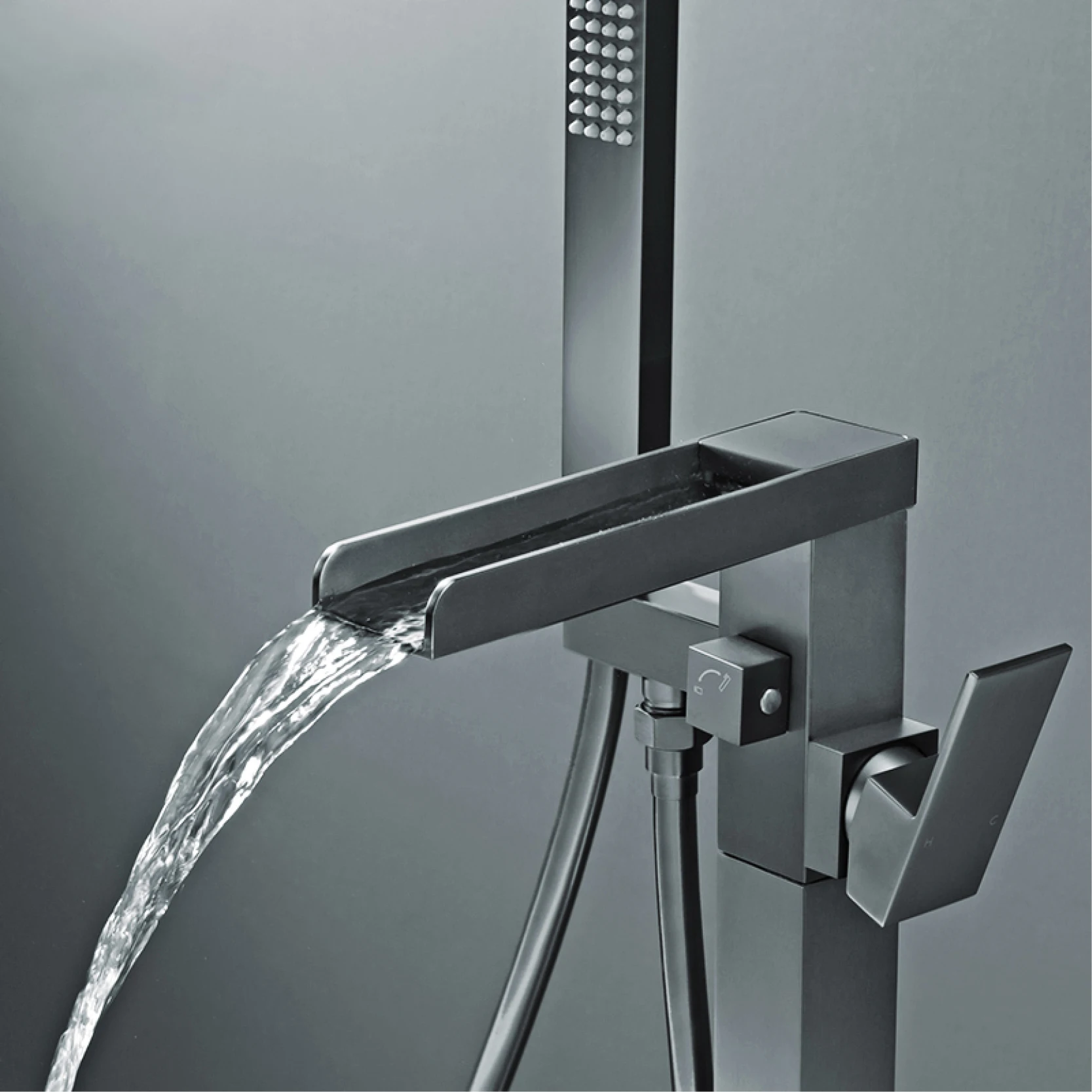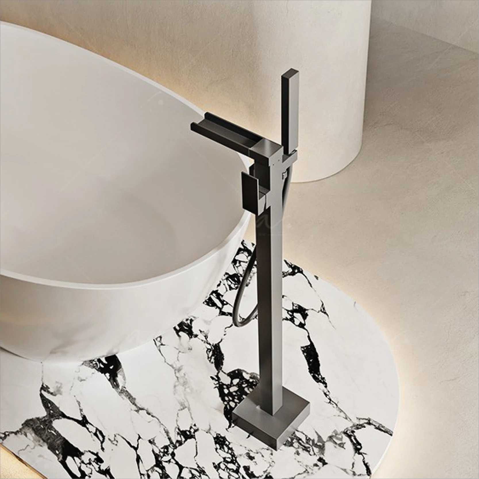 AITANA ก๊อกน้ําห้องน้ําตั้งพื้นทองเหลืองสีดําหรูหราพร้อมดีไซน์ช่องน้ําตก เครื่องผสมอ่างอาบน้ําร้อนและเย็น