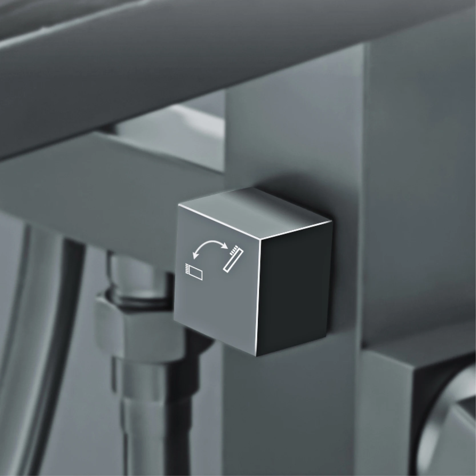 ก๊อกน้ําร้อนและน้ําเย็นอ่างอาบน้ํา ฝักบัวไร้หลังคา ฝักบัวมือถือในห้องน้ําติดผนัง