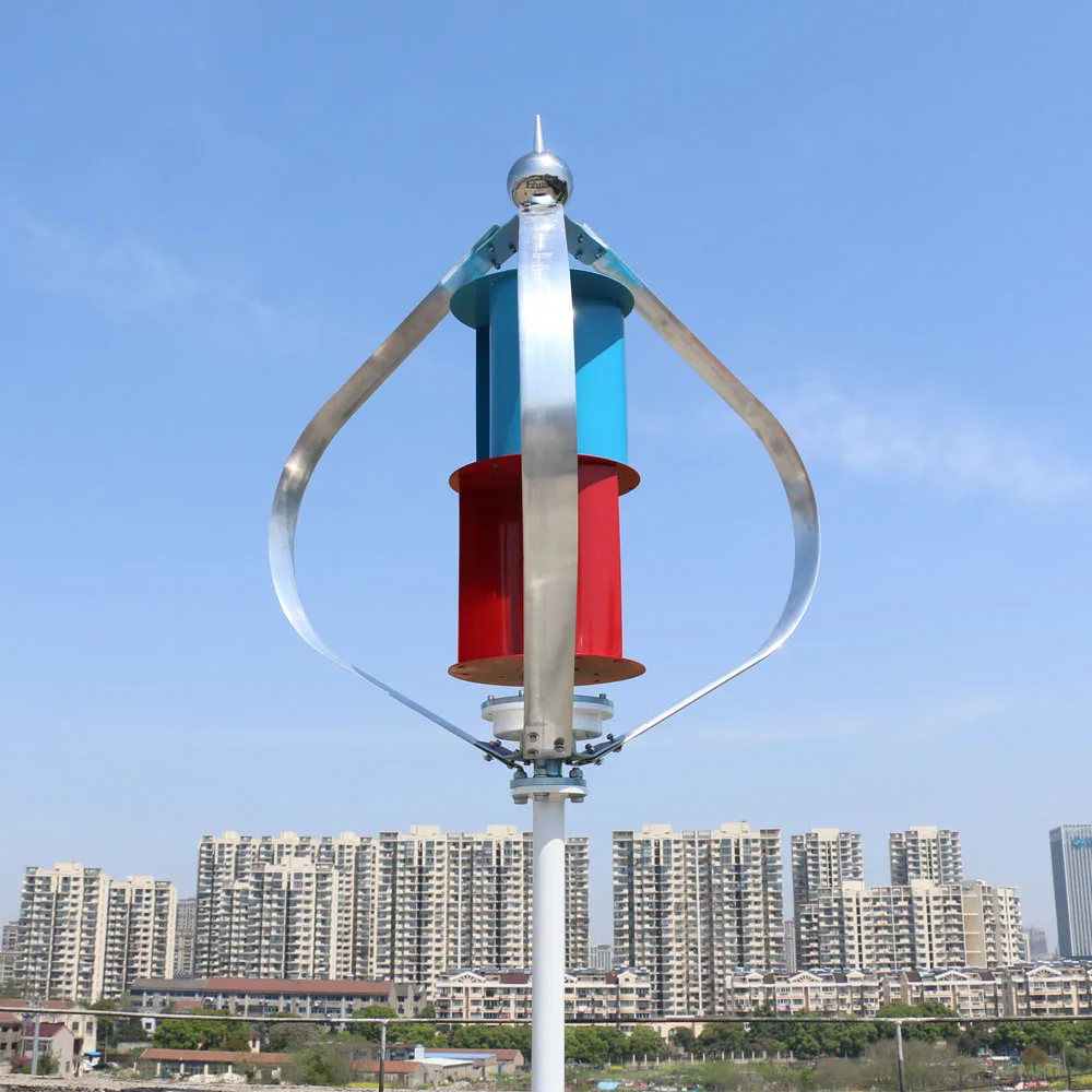 กังหันลมแนวตั้ง 800W 1000W 12V 24V 48V เครื่องกำเนิดไฟฟ้าแม่เหล็กไฟฟ้าเริ่มทำงานที่ความเร็วลมต่ำ พลังงานฟรี กังหันลมไฟฟ้ากระแสสลับ 3 เฟส สำหรับใช้ในบ้าน