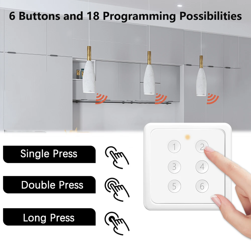 Tuya ZigBee EU มาตรฐาน 6 ปุ่มติดตั้งรีโมทแบบพกพา