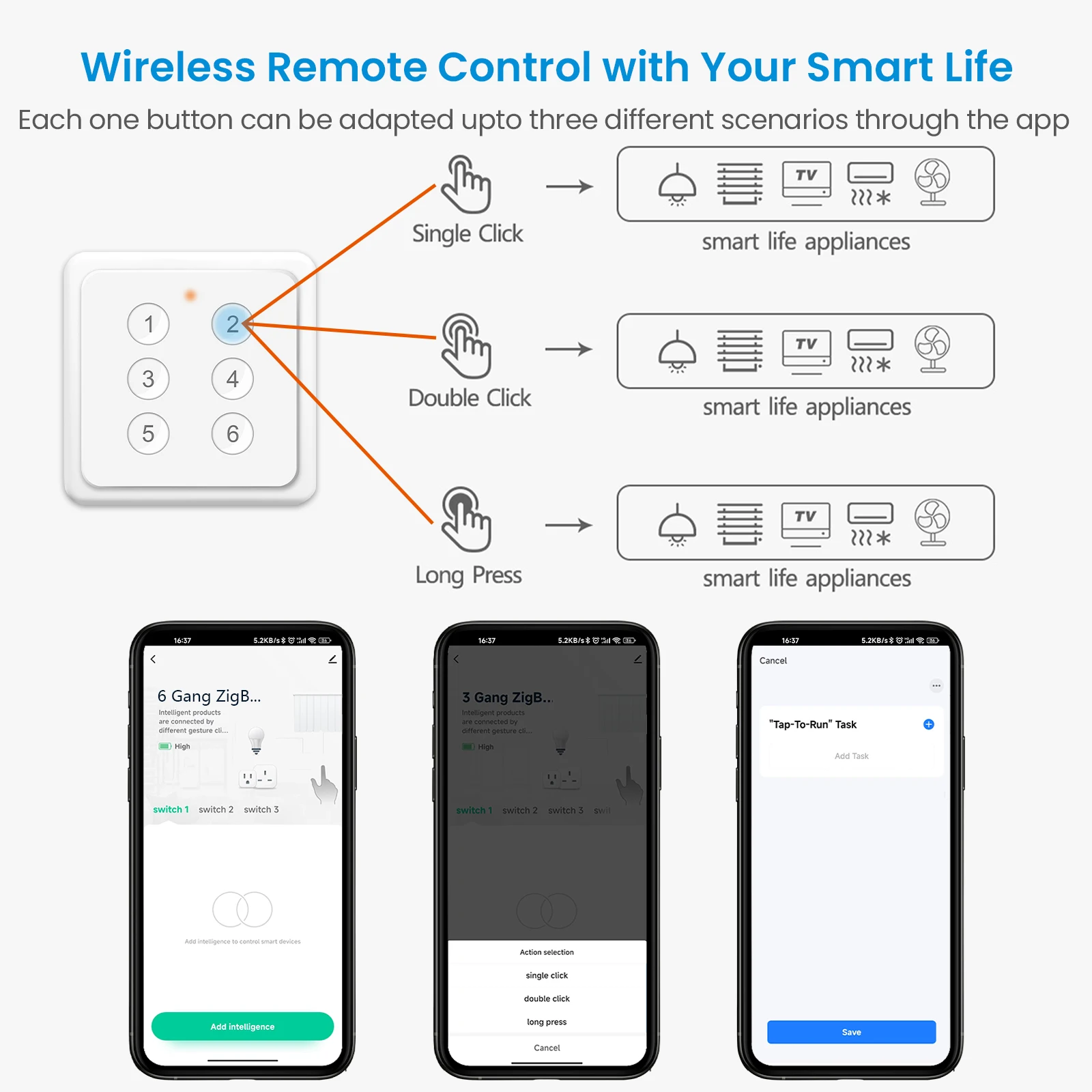 – ด้วยรีโมท Tuya ZigBee 6 Gang นี้ คุณสามารถกําหนดคําสั่งได้สูงสุด 18 คําสั่งในแอป Smart Life