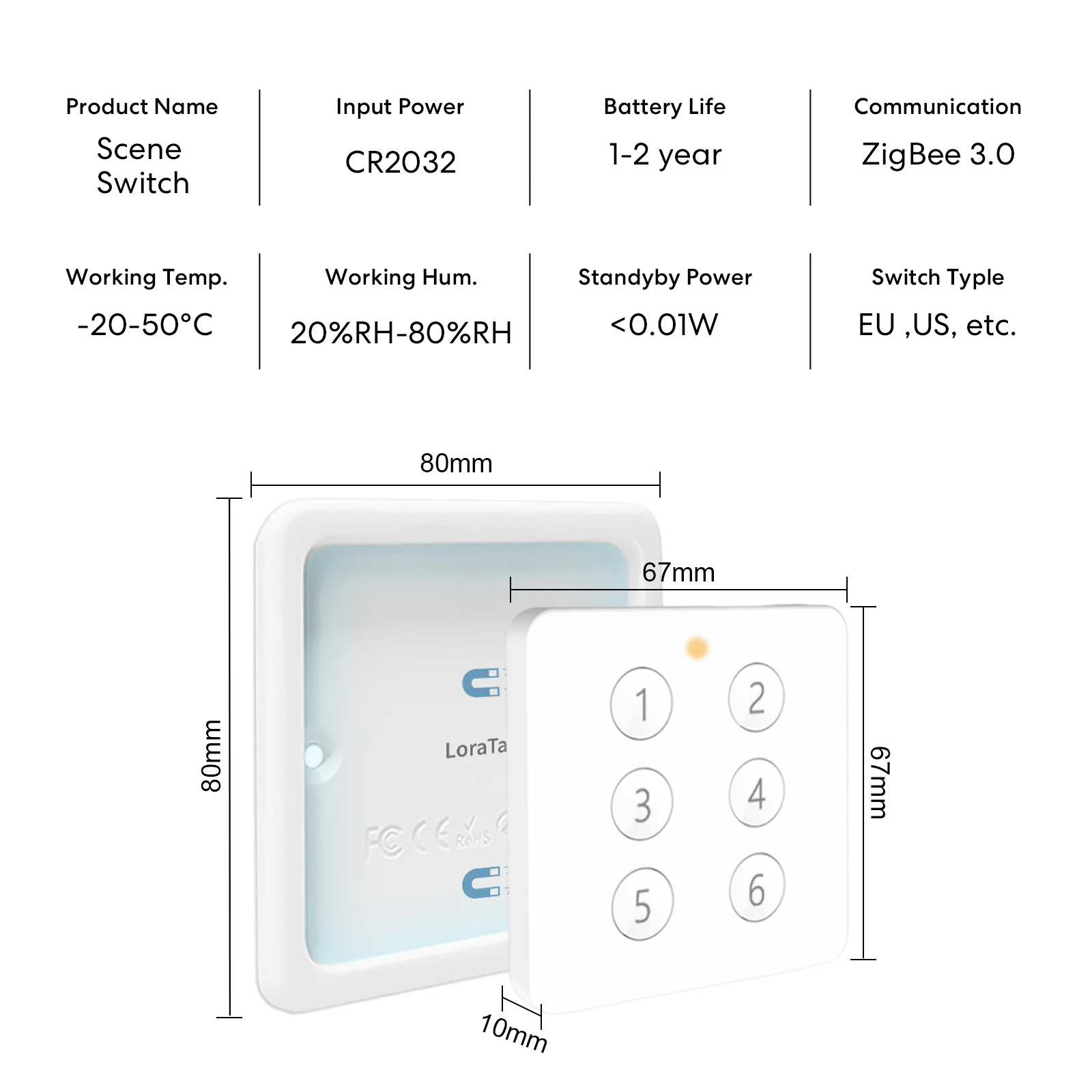LoraTap ZigBee 3.0 Tuya Smart Life EU มาตรฐาน 6 ปุ่มฉากแก๊งแม่เหล็กรีโมทคอนโทรลสวิตช์ GATEWAY ต้องใช้ ZigBee2MQTT