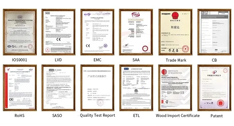 GS (เยอรมัน) CE (สหภาพยุโรป) ETL (อเมริกาเหนือ) SASO (ซาอุดีอาระเบีย) SAA (ออสเตรเลีย)และใบรับรองความปลอดภัยในประเทศและต่างประเทศอื่นๆบริษัท Smartmak เป็นไปตามข้อกําหนดของความพยายามในการจัดการองค์กรสมัยใหม่มาโดยตลอดเพื่อใช้มาตรฐานระบบการจัดการคุณภาพ ISO9000 ปรับปรุงระดับการจัดการคุณภาพในเวลาเดียวกัน บริษัทได้สร้างระบบบริการหลังการขายที่สมบูรณ์แบบ ด้วยภาพลักษณ์ของแบรนด์ที่ดี ประสิทธิภาพการใช้พลังงานสูง รับประกันเครดิตและบริการที่ดีที่สุดสําหรับลูกค้าในประเทศและต่างประเทศ