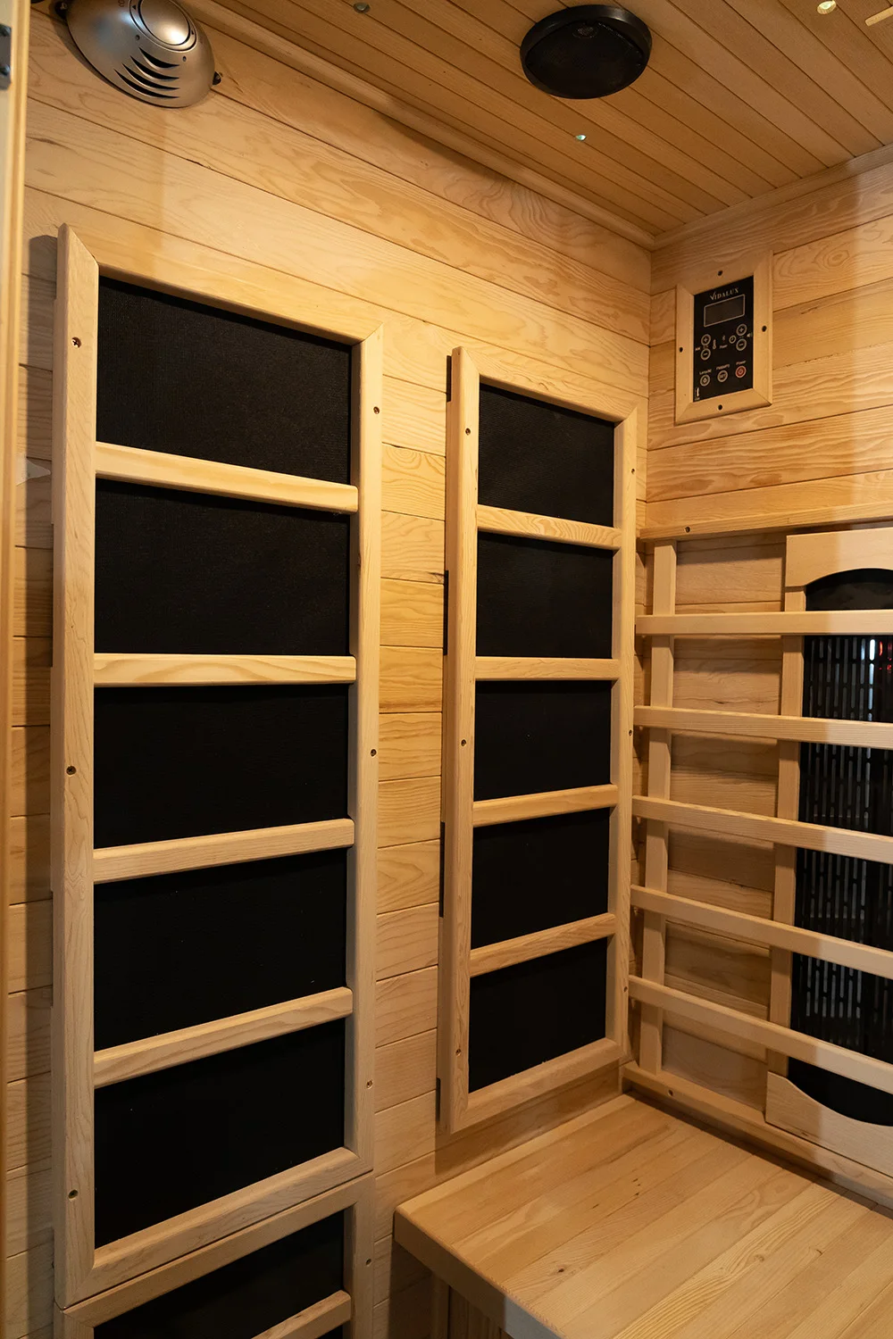 ลําโพง 2 ชิ้น คุณสามารถเพลิดเพลินกับเสียงเพลงระหว่างซาวน่า