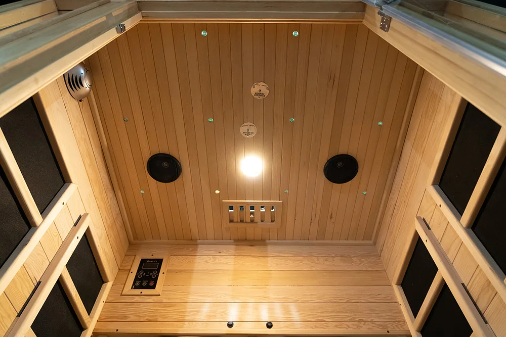 ลําโพง 2 ชิ้น คุณสามารถเพลิดเพลินกับเสียงเพลงระหว่างซาวน่า
