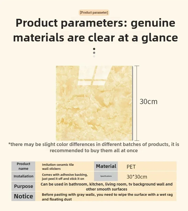 【ติดตั้งง่าย】เพียงฉีกสติกเกอร์ด้านหลังออกแล้วติดบนพื้นสะอาดไม่มีฝุ่นลอยพื้นผิวที่ได้รับการอัพเกรดใหม่ ทนต่อการสึกหรอมากขึ้น กล่องเดียวประกอบด้วยกระเบื้องปูพื้นที่มีรูปแบบเดียวกัน การตัดที่เหมาะสมทําให้กระเบื้องอยู่ในแนวเดียวกัน เพิ่มความหรูหราและความทันสมัยให้กับบ้านของคุณ