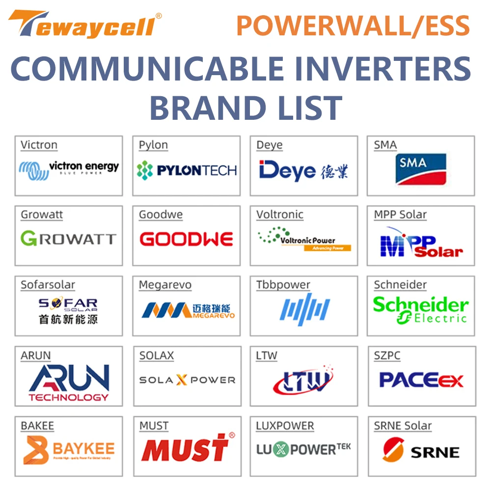 GROWATT, Deye, GOODWE, VICTRON, SOFAR, SRNE, VOLTRONIC POWER |