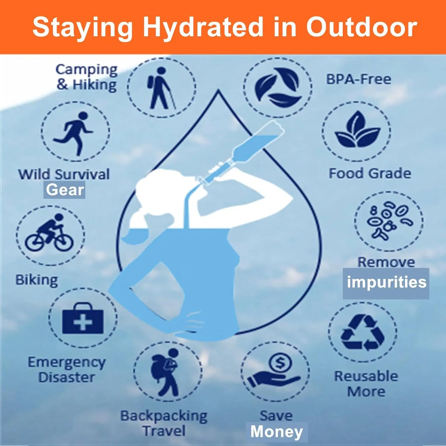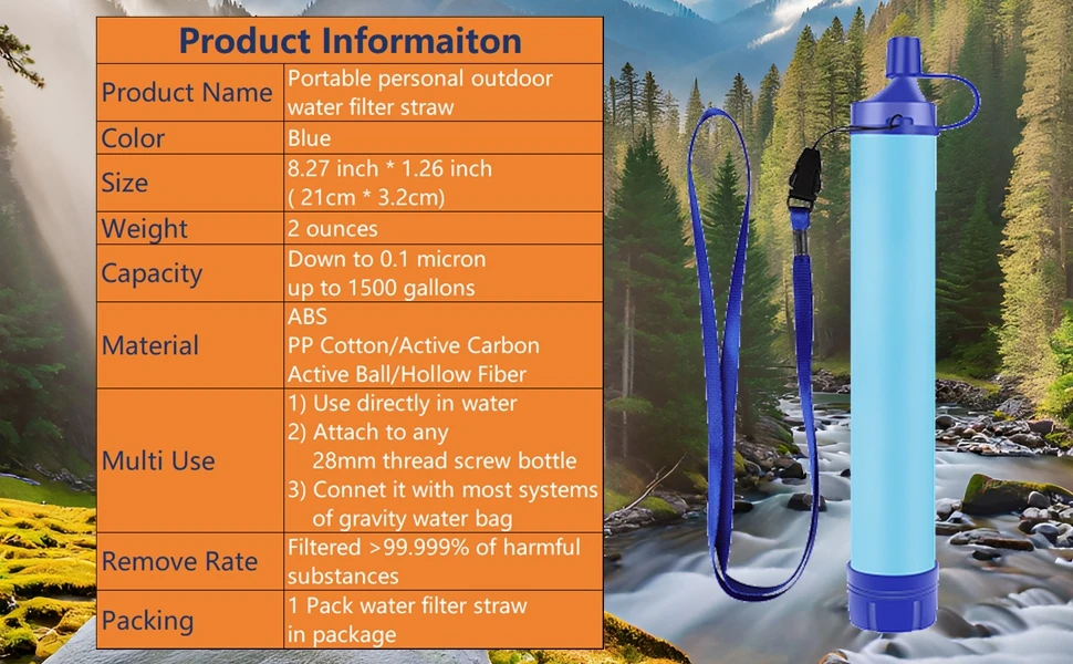 - ทนทานยาวนาน: หลอดกรองน้ำนี้ช่วยกรองน้ำให้สะอาด โดยสามารถกรองน้ำได้สูงสุดถึง 1500 ลิตร (396 แกลลอน) เหมาะสำหรับการผจญภัยกลางแจ้งระยะยาวและสถานการณ์ฉุกเฉิน