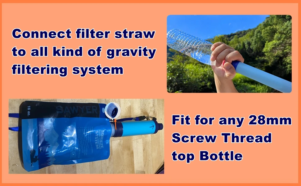 เครื่องกรองน้ำแบบพกพาสำหรับส่วนตัว, อุปกรณ์เตรียมพร้อมฉุกเฉินสำหรับการกรองน้ำ เหมาะสำหรับการเดินป่า แคมป์ปิ้ง ตกปลา ล่าสัตว์ และการผจญภัยกลางแจ้ง พร้อมฐานเกลียวขนาด 2.8 มม. เครื่องกรองน้ำสำหรับการเอาตัวรอด