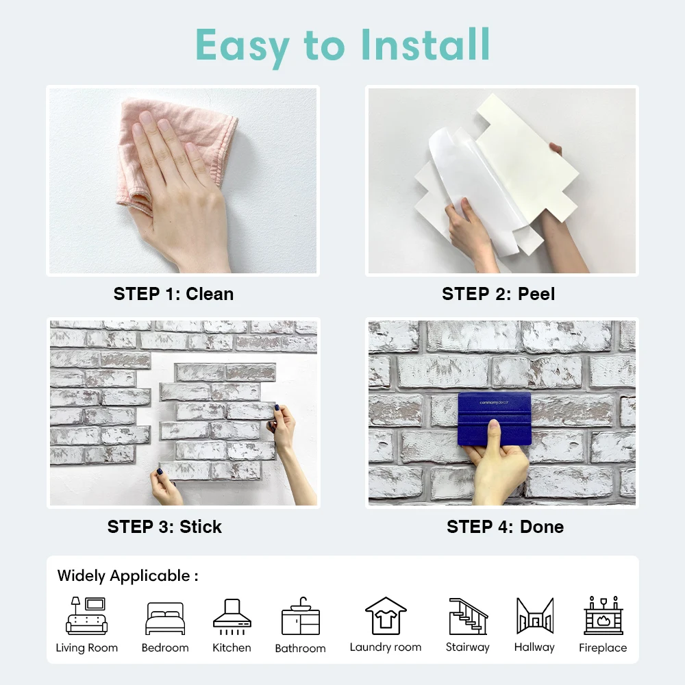 การติดตั้งที่ง่ายและรวดเร็ว: แค่ลอกแล้วติด!ไม่มียาแนว ไม่มีซีเมนต์ และไม่เลอะเทอะ!ตัดง่ายด้วยมีดอรรถประโยชน์หรือกรรไกรเหมาะสําหรับโครงการ DIY ตกแต่งผนัง