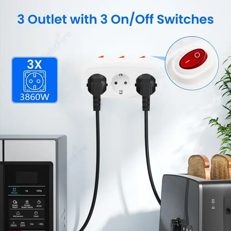 1 ถึง 3 EU Wall SOCKET 3 สวิตช์เปิด/ปิดสเปนฝรั่งเศสเยอรมนีเกาหลีมาตรฐาน AC Outlets EXTENSION Power Strip Power Converter