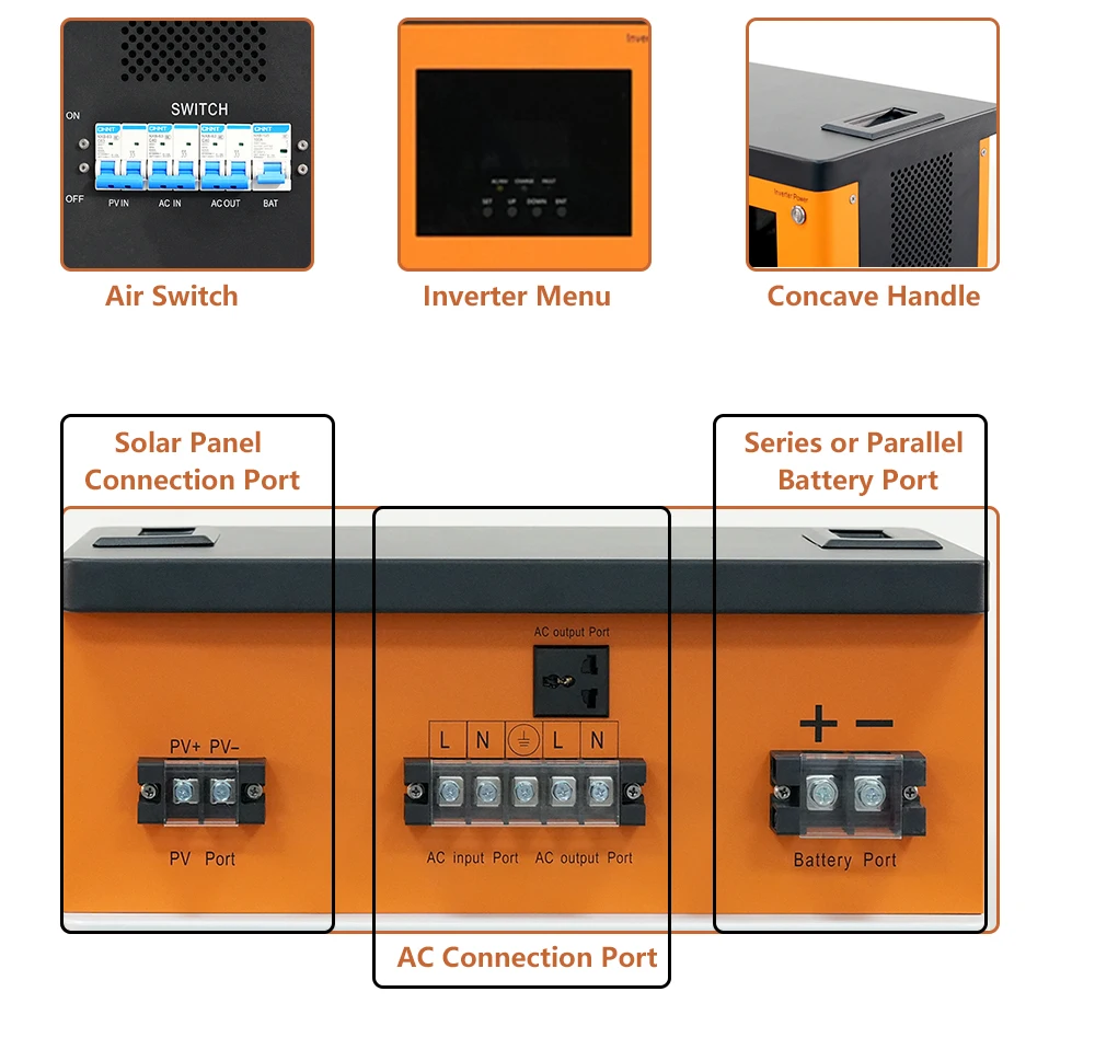 อินเวอร์เตอร์พลังงานแสงอาทิตย์แบบออฟกริดความถี่สูง 3.6 กิโลวัตต์ 220 โวลต์ สำหรับใช้ในครัวเรือน ฟาร์ม และการเกษตร