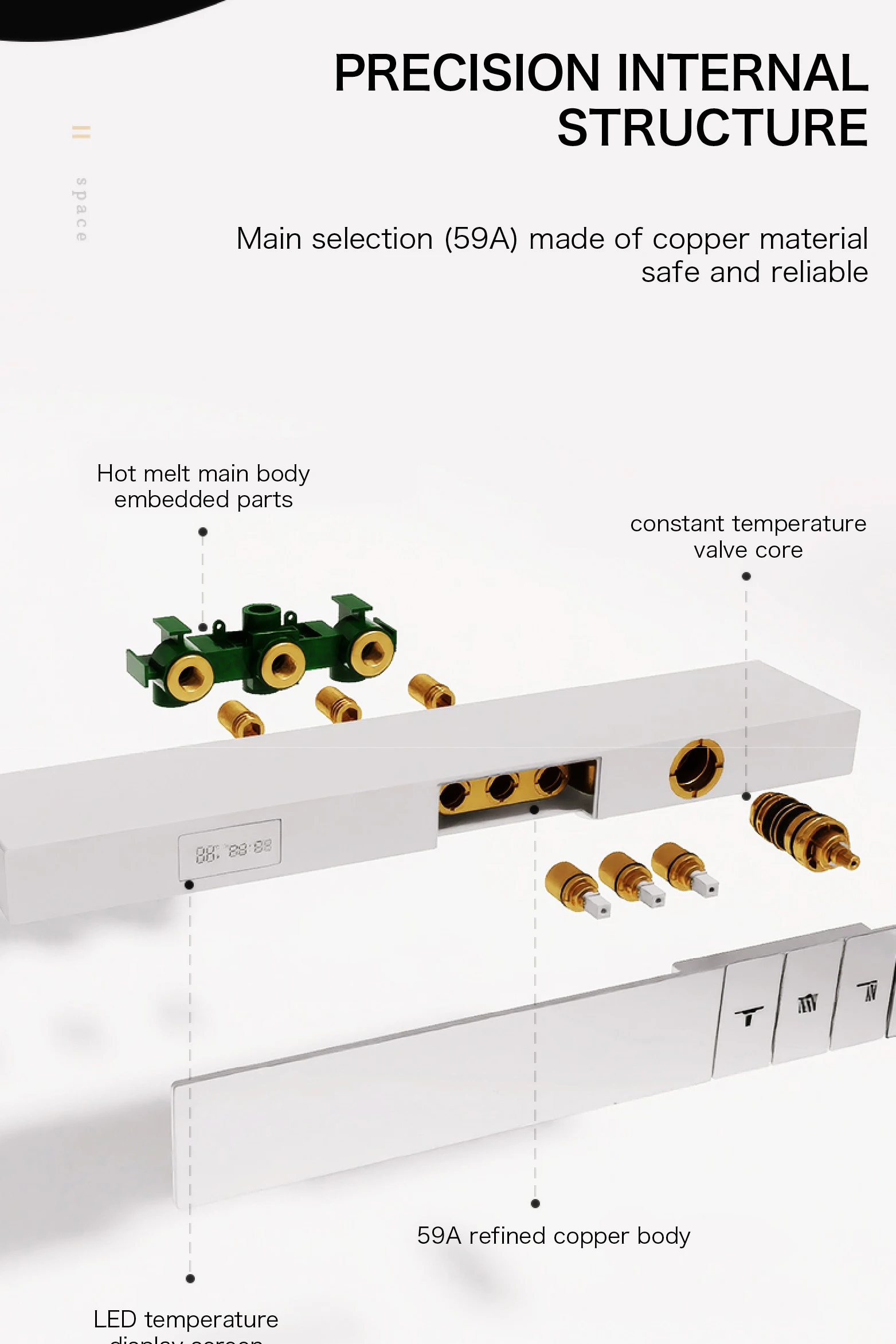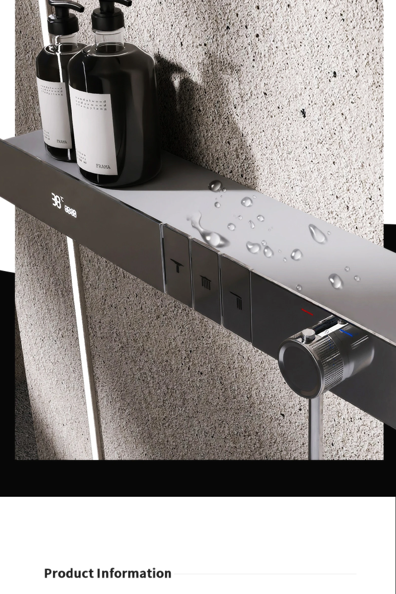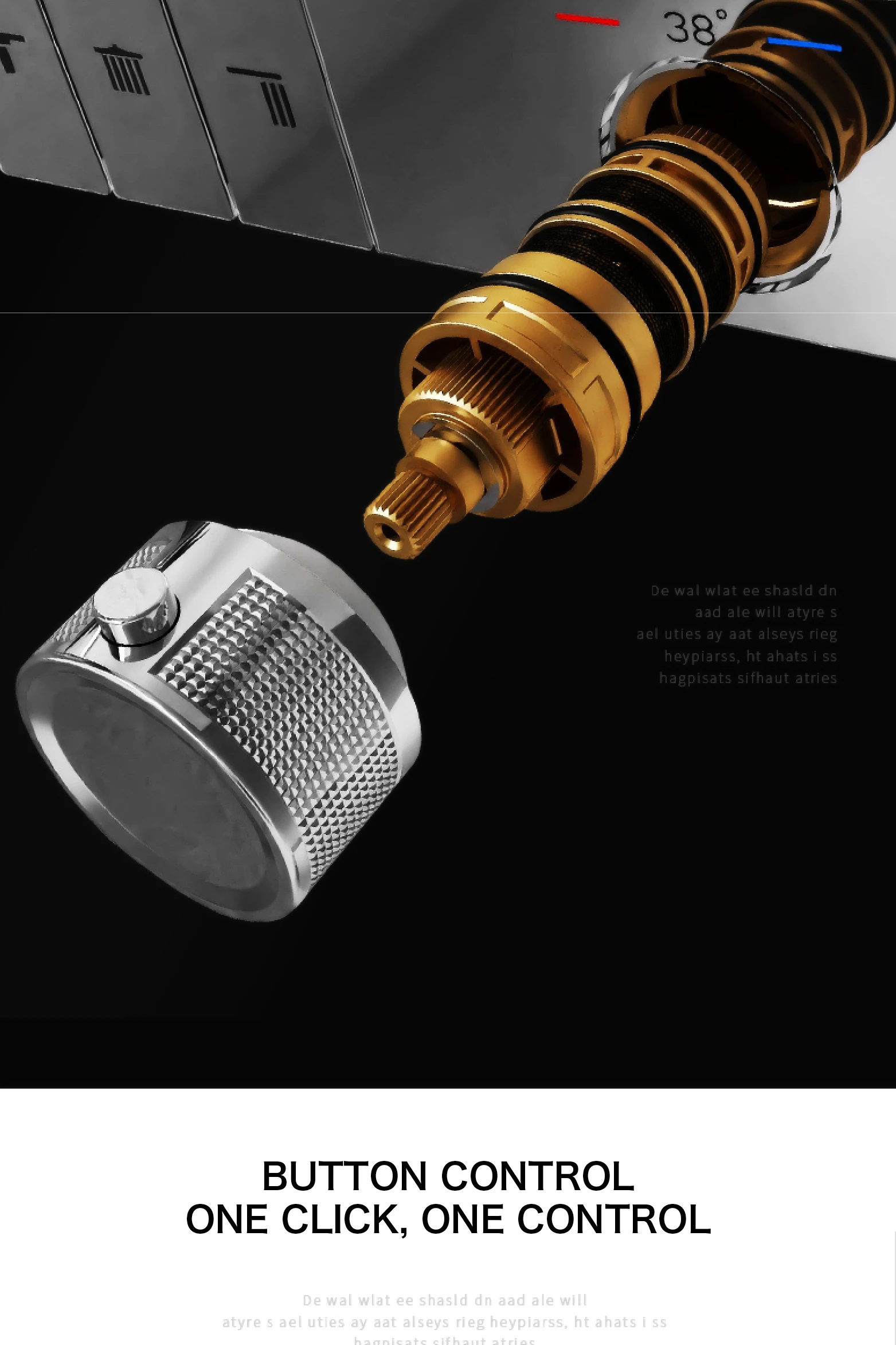 ชุดฝักบัวอาบน้ำระบบเทอร์โมสตัทติดเพดานทองเหลืองหรูหรา พร้อมจอแสดงผลดิจิตอล LED ระบบเสียงบลูทูธ หัวฝักบัวแบบเรนชาวเวอร์ ก๊อกน้ำในห้องน้ำ