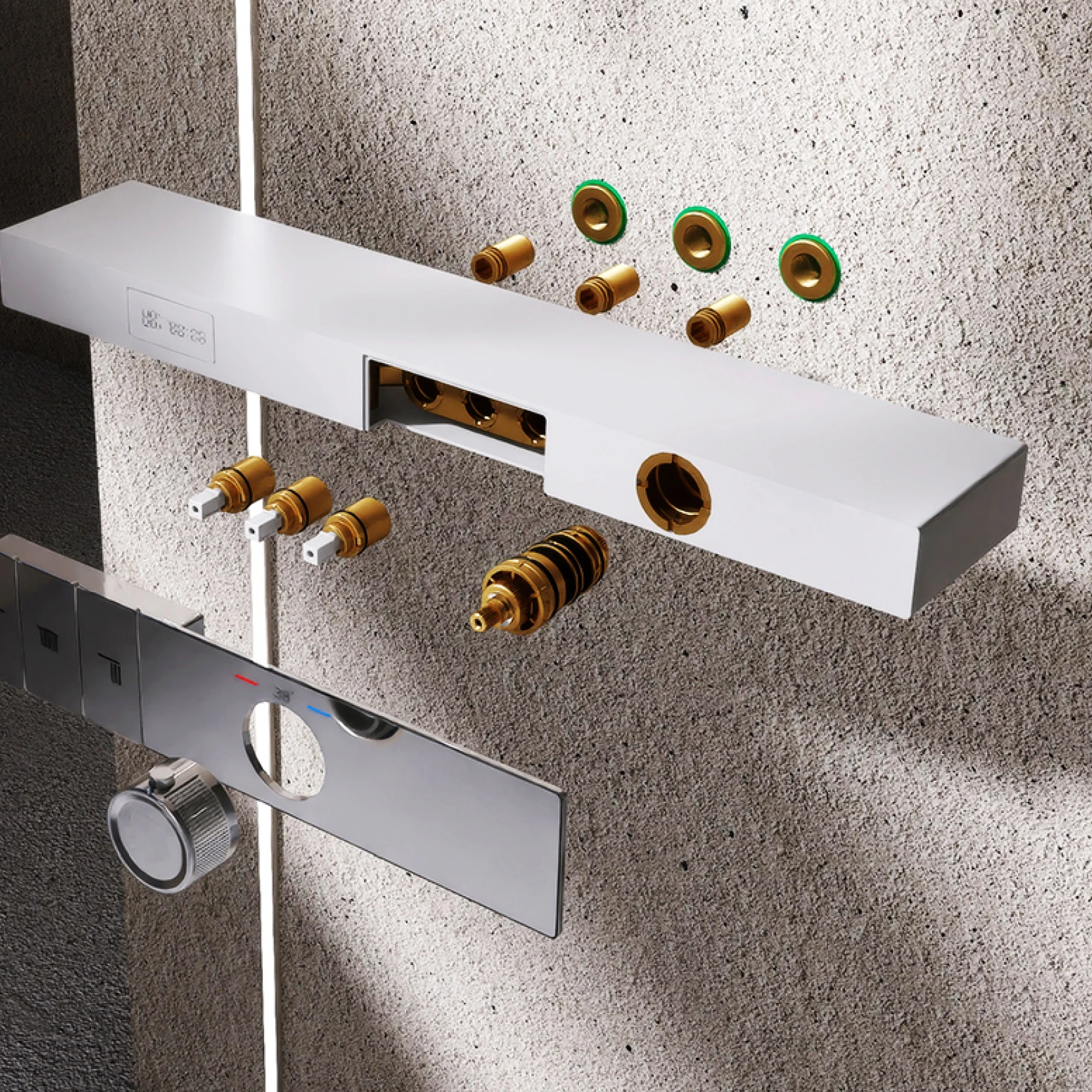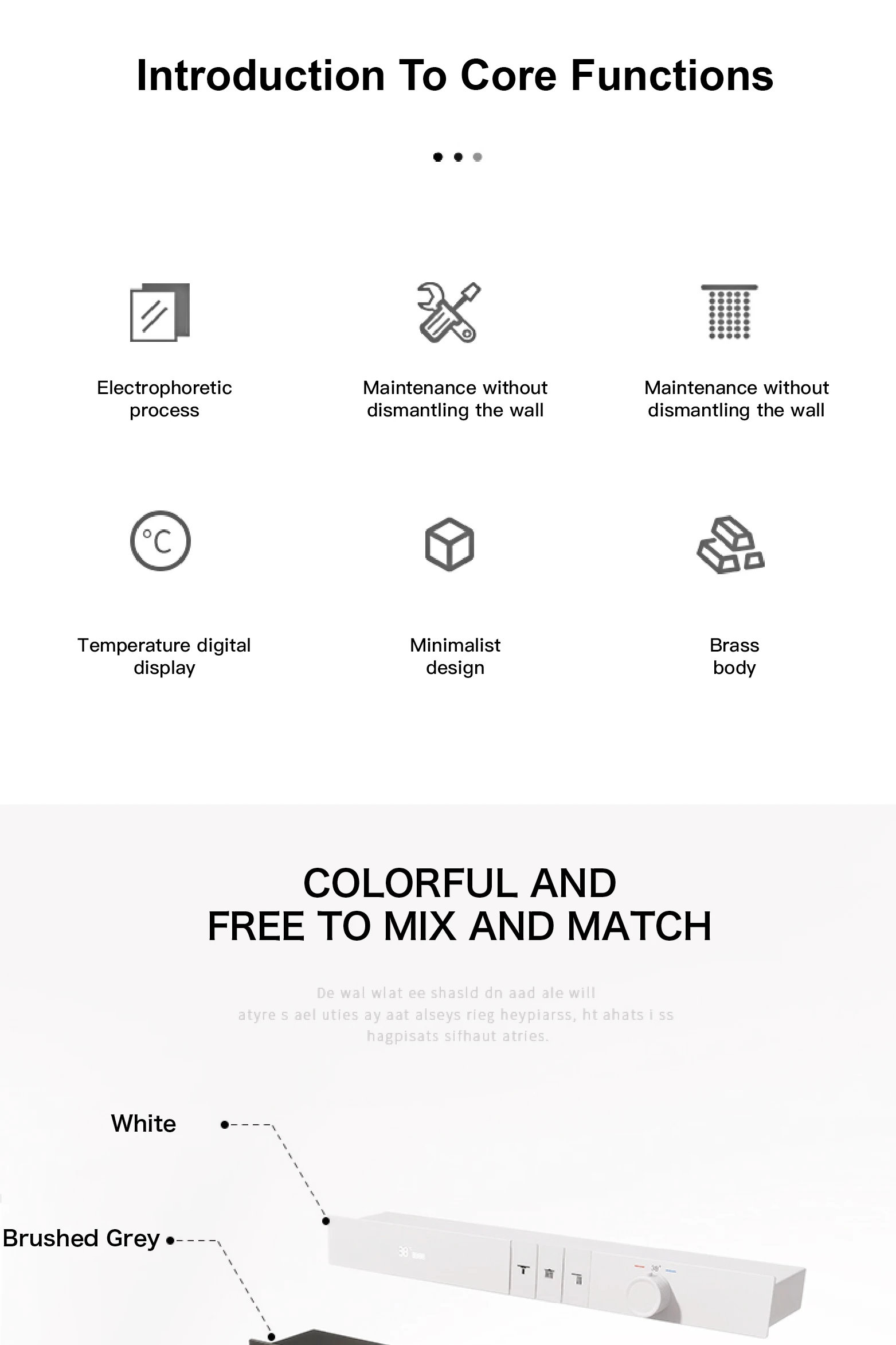ทองเหลืองหรูหราในระบบฝักบัวติดผนังพร้อมดีไซน์ติดผนัง จอแสดงผลดิจิตอล LED สําหรับก๊อกน้ําห้องน้ํา 3 ฟังก์ชั่นน้ําร้อนและน้ําเย็น
