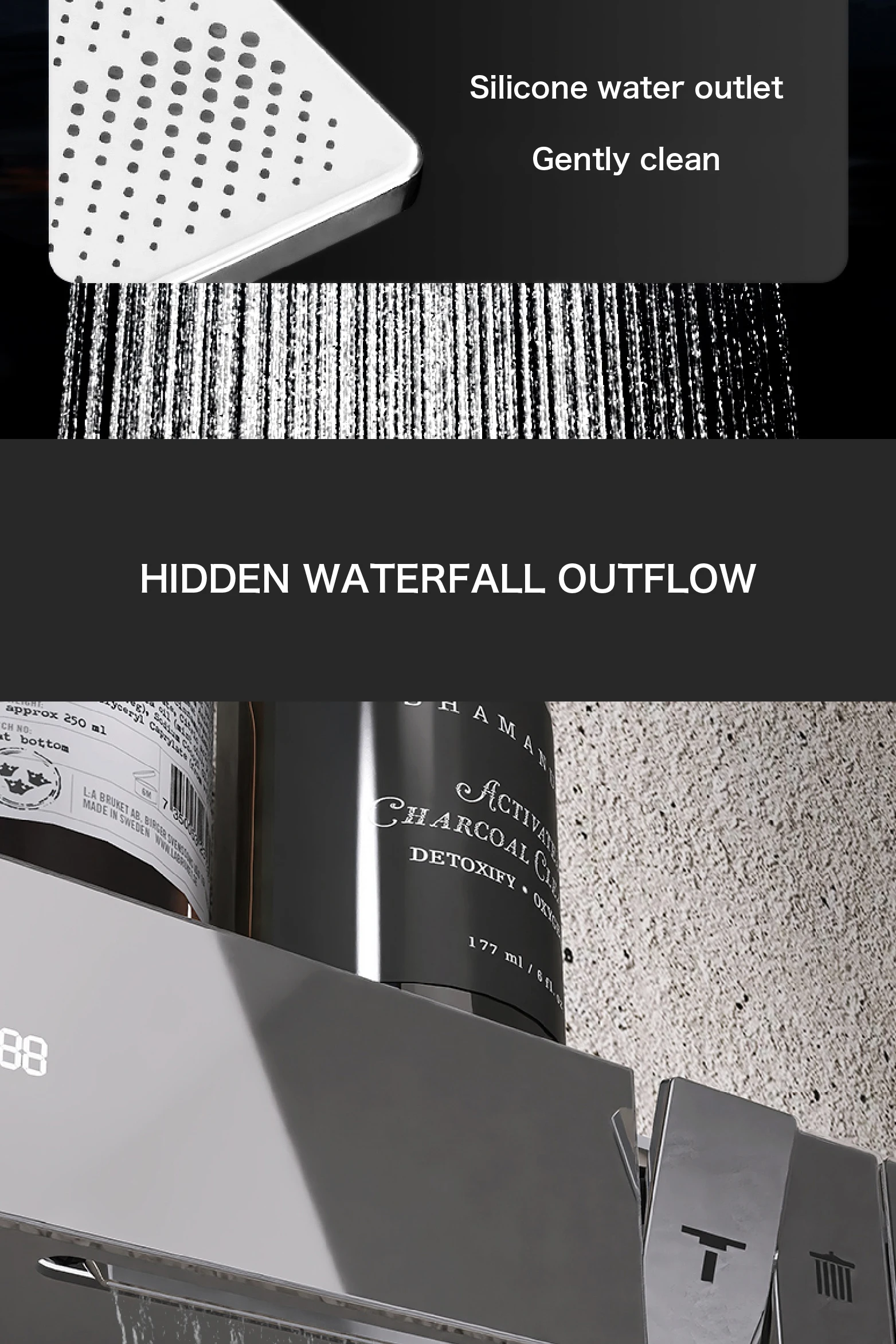หรูหราห้องน้ําก๊อกน้ําชุดสมาร์ทจอแสดงผลอุณหภูมิฝักบัวอาบน้ําระบบฝนน้ําตก LED อ่างอาบน้ํา TAP ฝักบัว