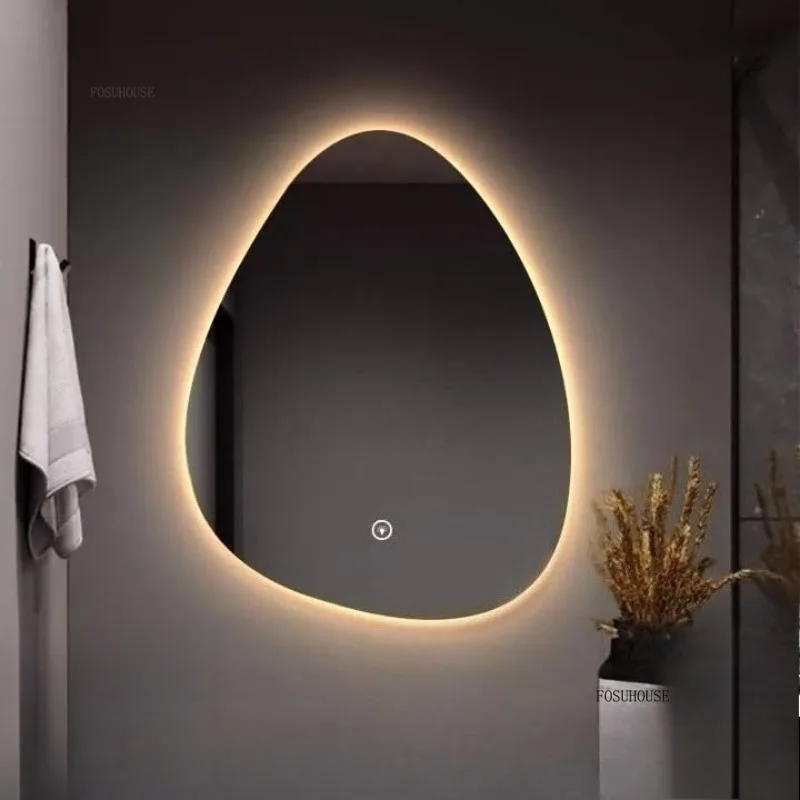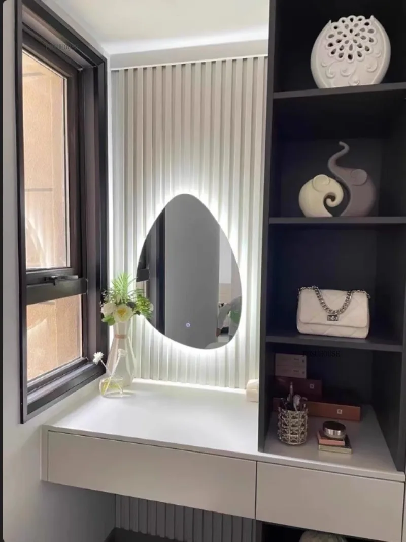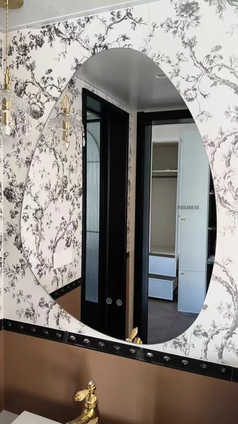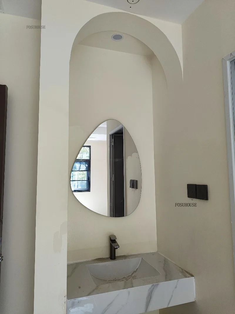 กระจกห้องน้ำ LED อัจฉริยะทันสมัย หน้าจอสัมผัส รูปทรงหยดน้ำ กระจกแต่งตัวในห้องน้ำโรงแรม พร้อมไฟ LED