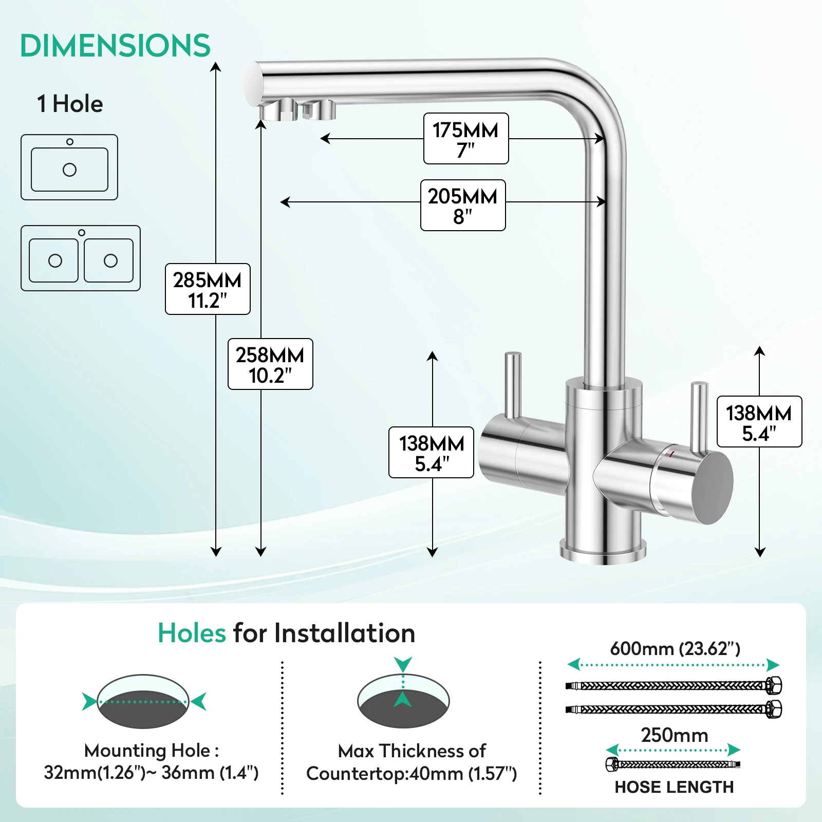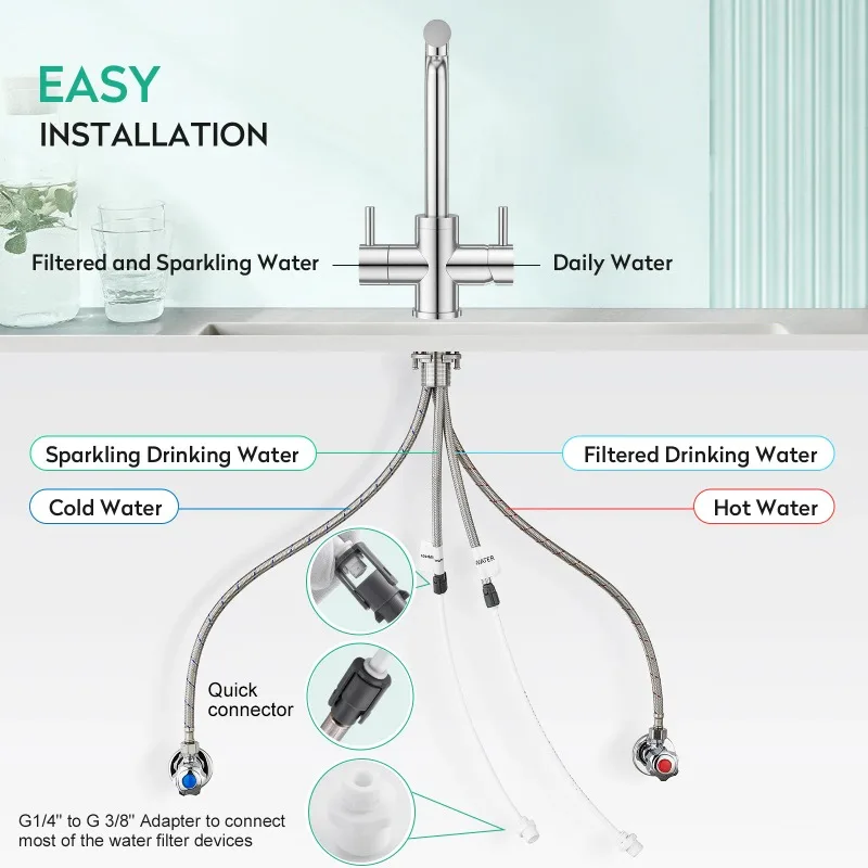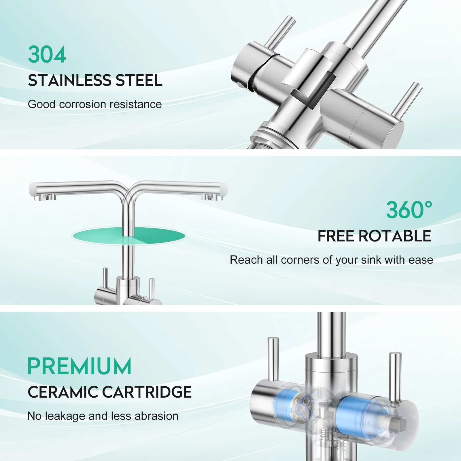 ก๊อกน้ำครัว CUPC CE แบบ 4 ทาง/3 ทาง ผลิตจากสแตนเลส 304 พร้อมก๊อกผสมอ่างล้างจาน 4 in 1 ก๊อกน้ำโซดา/น้ำอัดลม ระบบกรองน้ำ RO ก๊อกน้ำกรอง 4 ทาง