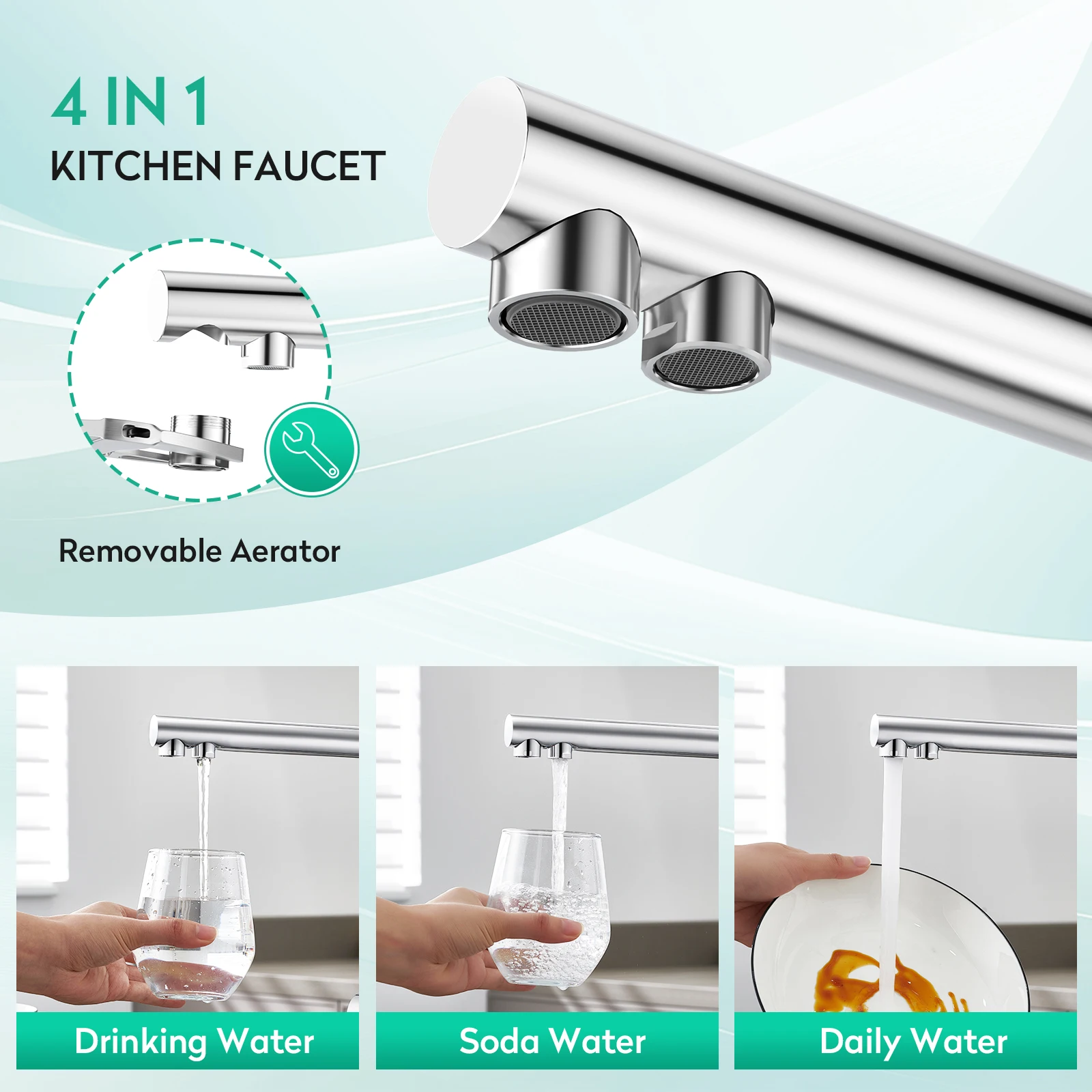 ก๊อกน้ำอเนกประสงค์ 4 ทาง/3 ทาง สำหรับห้องครัว CUPC CE ก๊อกผสมอ่างล้างจานสแตนเลส 304 ระบบกรองน้ำโซดาและน้ำอัดลม 4-in-1 ก๊อกน้ำกรอง 4 ทาง