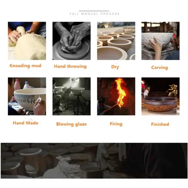 จีนพอร์ซเลนมือทาสีศิลปะอ่างล้างหน้าโบราณห้องน้ําอ่างล้างจานสีขาวดอกไม้นกรูปแบบอ่างล้างหน้าเซรามิก