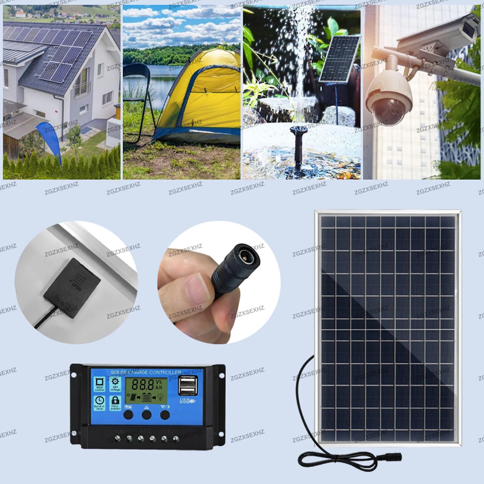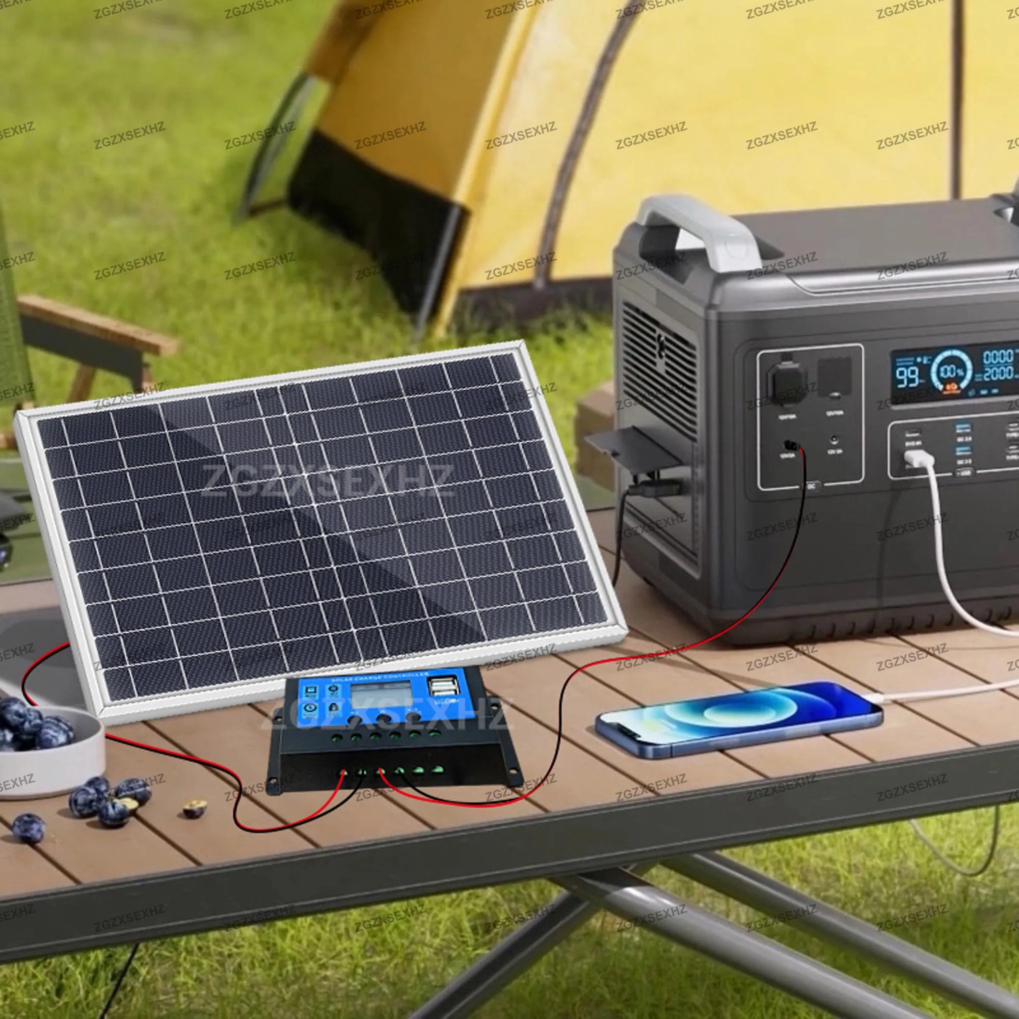 6000W อินเวอร์เตอร์พลังงานแสงอาทิตย์ชุด 30A Controller 5V แผงพลังงานแสงอาทิตย์โทรศัพท์สมาร์ทชาร์จ Camping Home ระบบพลังงานแสงอาทิตย์สําหรับ Home RV