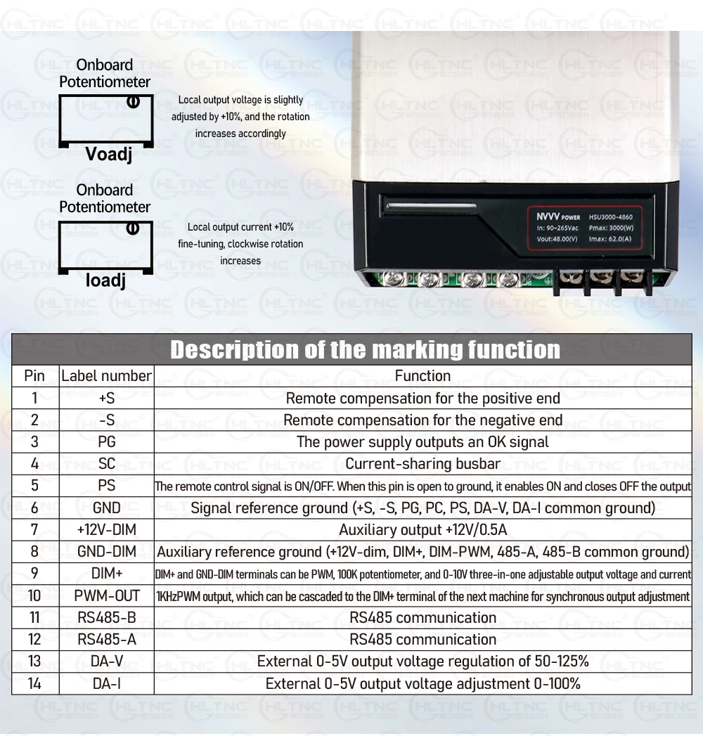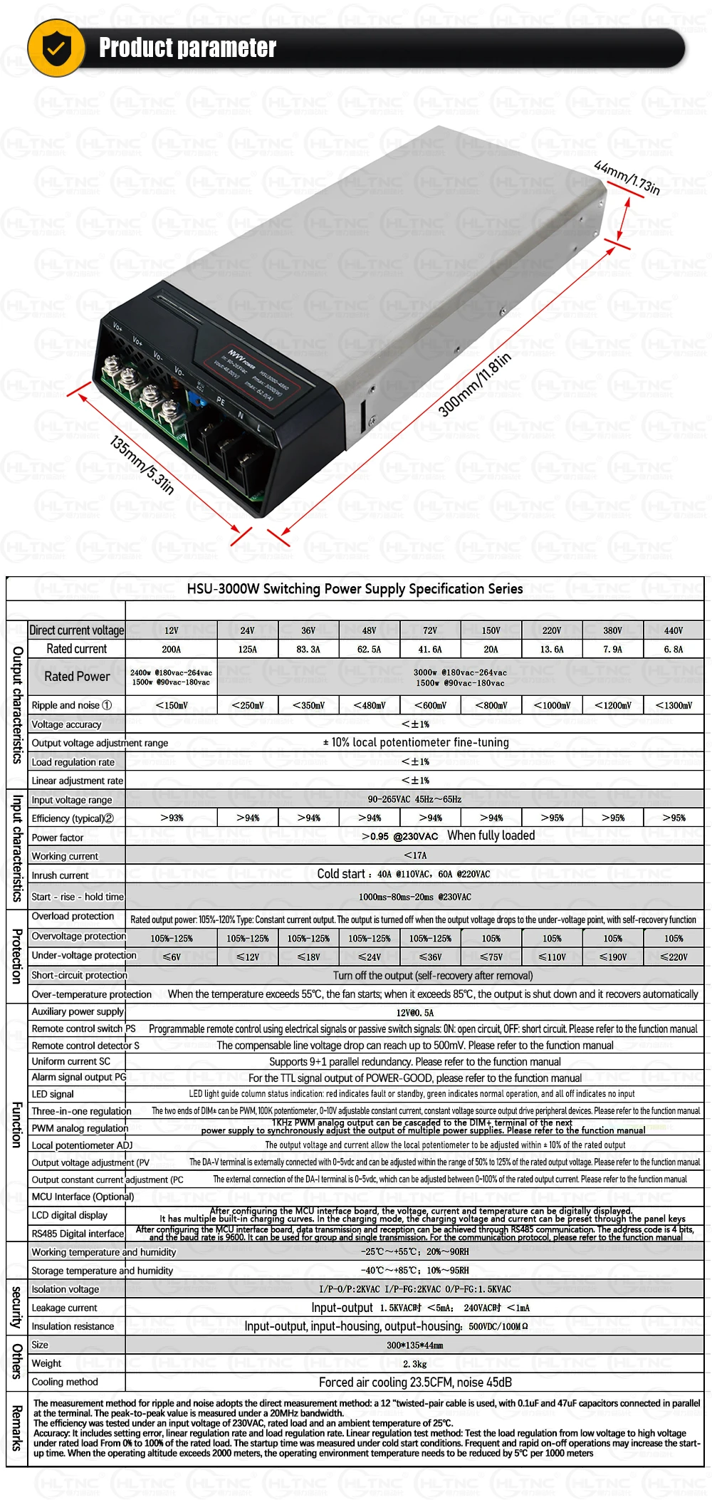 แหล่งจ่ายไฟสวิตชิ่ง HLTNC 3000W DC รองรับไฟฟ้า AC 110V/220V ให้กำลังไฟฟ้าขาออก 12V 24V 48V 72V 150V 220V 380V 440V สำหรับระบบอัตโนมัติในอุตสาหกรรมและไฟ LED