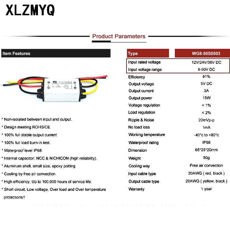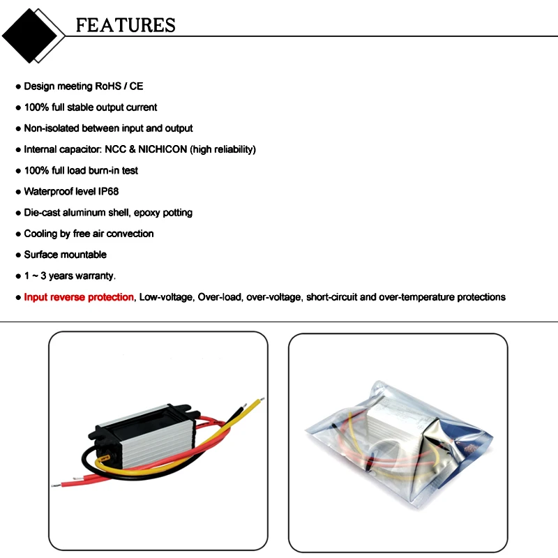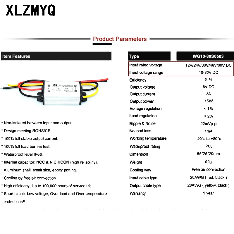 DC-DC แปลงไฟ DC 12V 24V 36V 48V 60V ถึง5V 3A แหล่งจ่ายไฟ LED 15W โมดูลกันน้ำสำหรับรถยนต์พลังงานแสงอาทิตย์