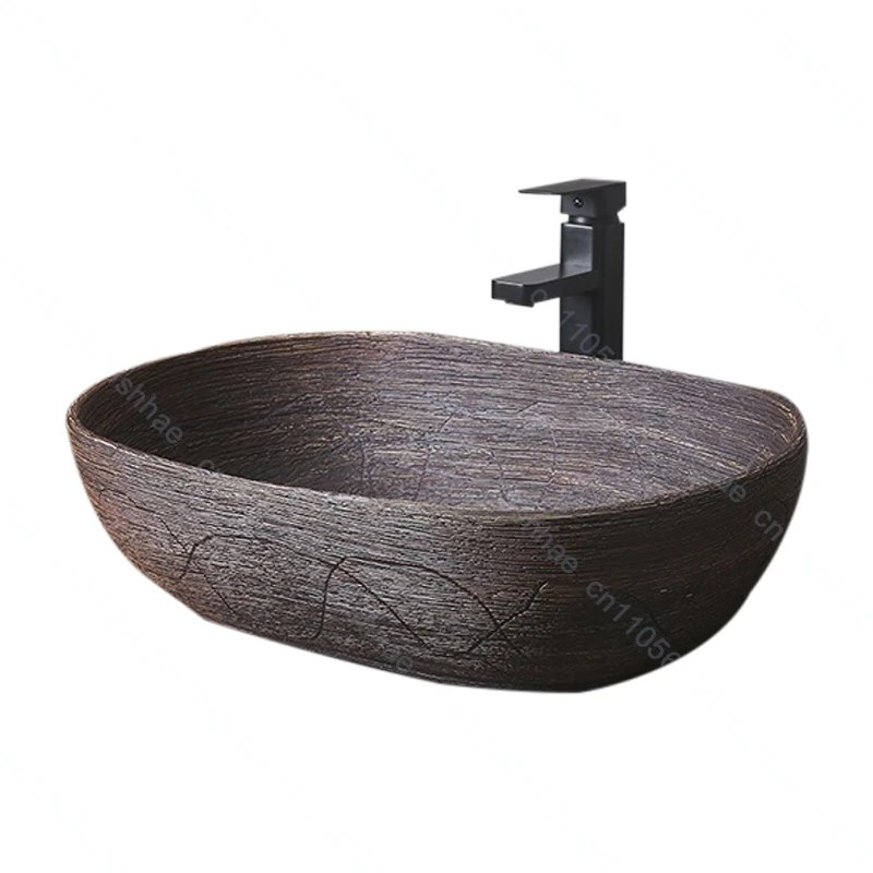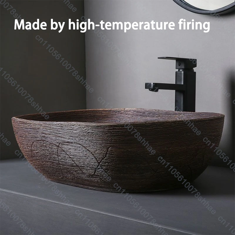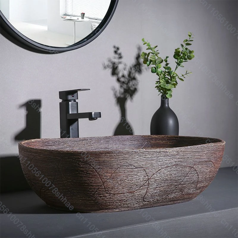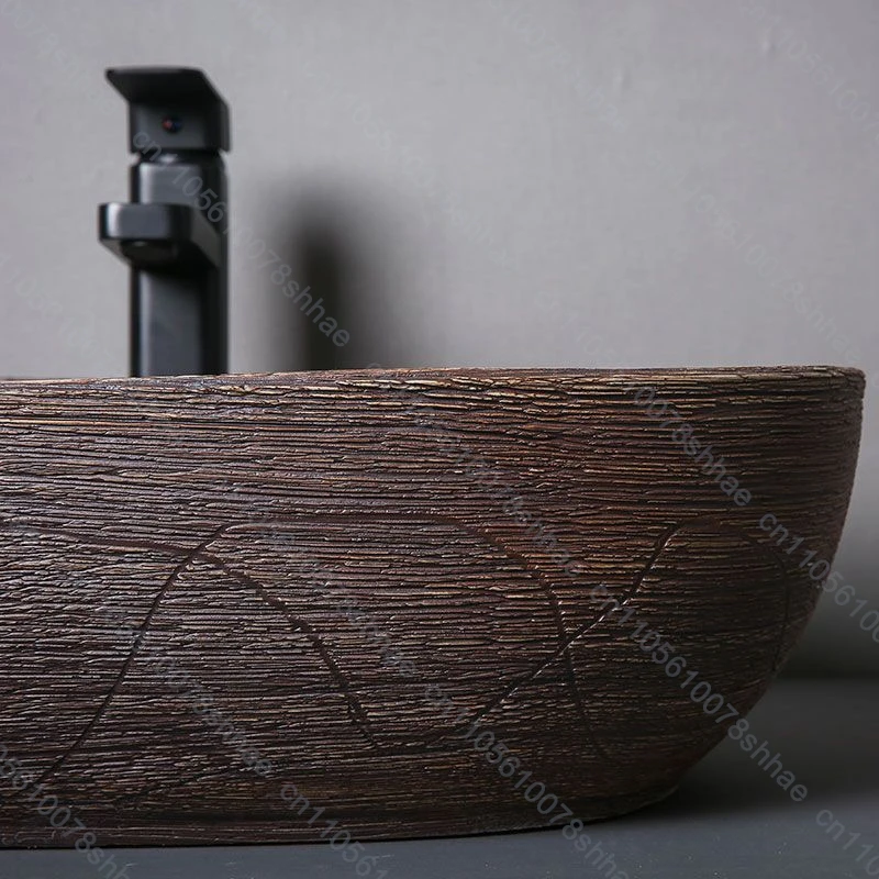 อ่างล้างหน้าเซรามิกลายไม้ อ่างล้างหน้าแบบวางบนเคาน์เตอร์ อ่างล้างหน้าสำหรับห้องน้ำ อ่างล้างหน้าแบบศิลปะ