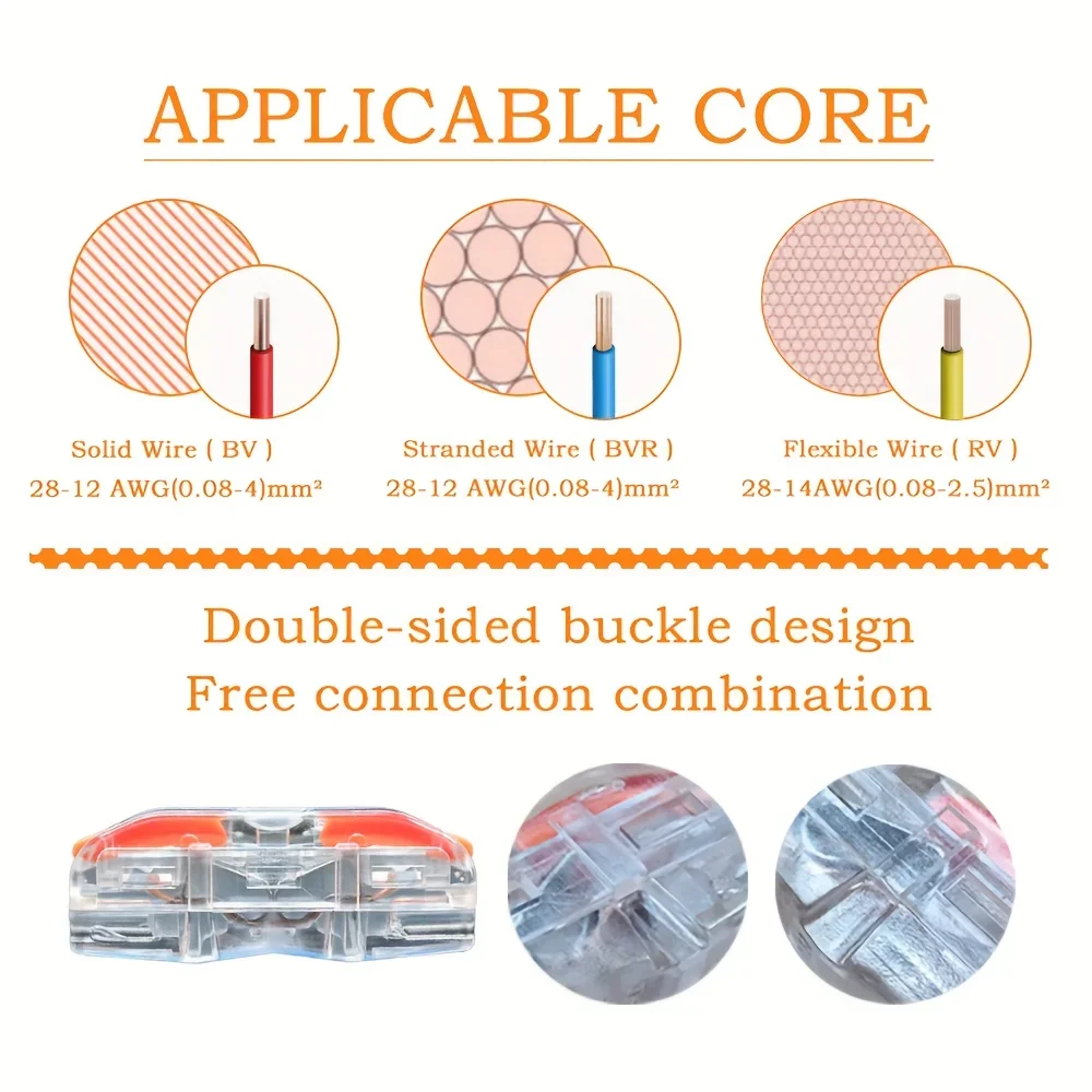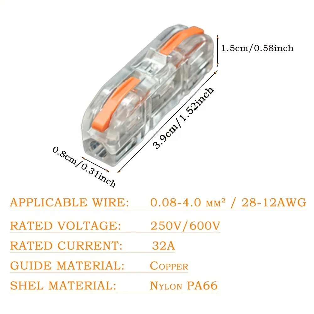 20 ชิ้น/50 ชิ้น ขั้วต่อสายไฟอเนกประสงค์ 28-12 AWG ทนไฟ โปร่งใส แบบกดติดเร็ว สำหรับไฟบ้าน