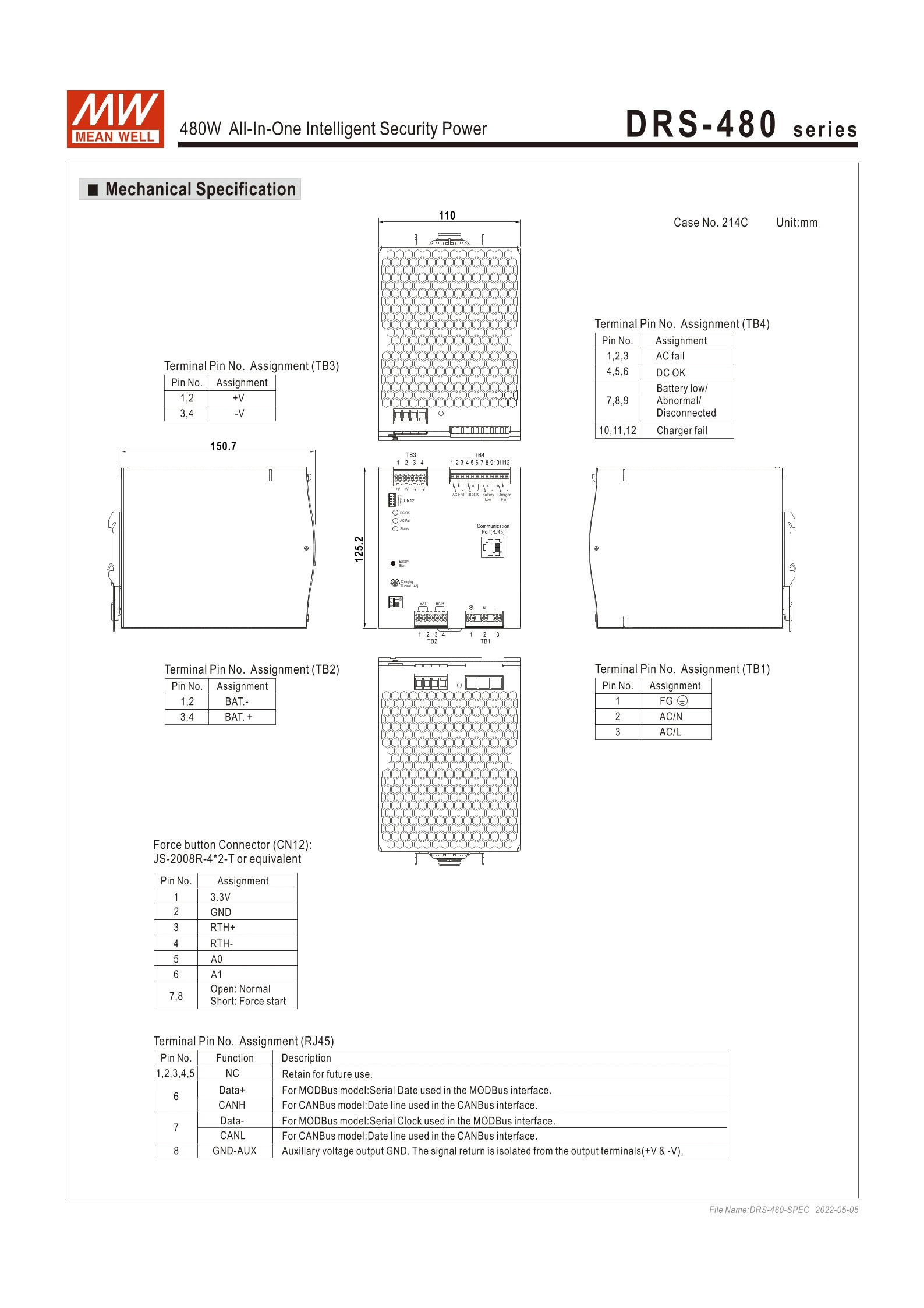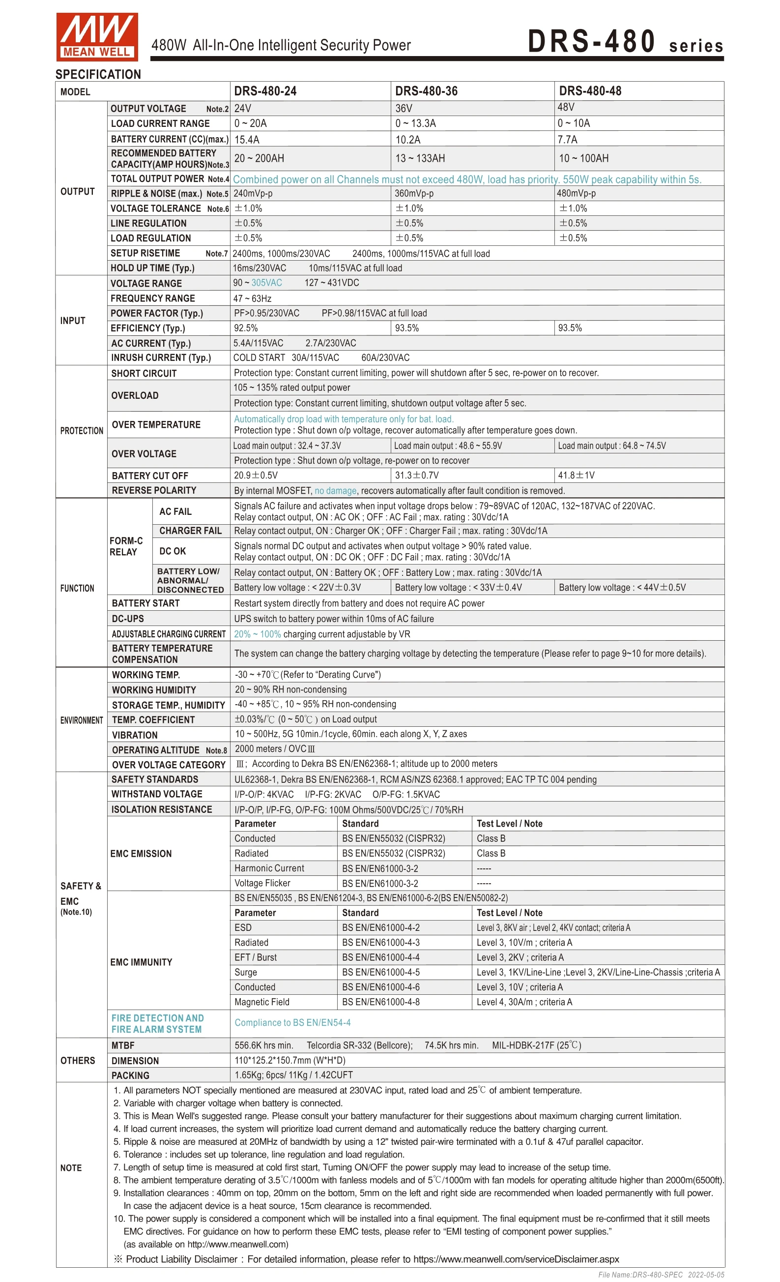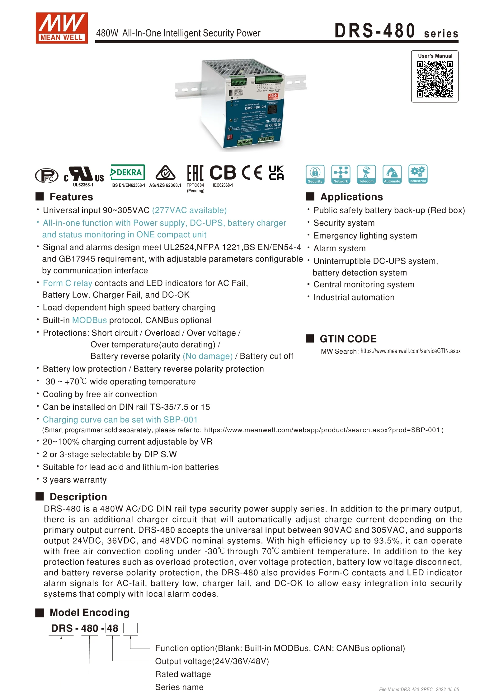 Mean Well DRS-480 DRS-480-24 DRS-480-36 DRS-480-48 MW DRS 480 480W