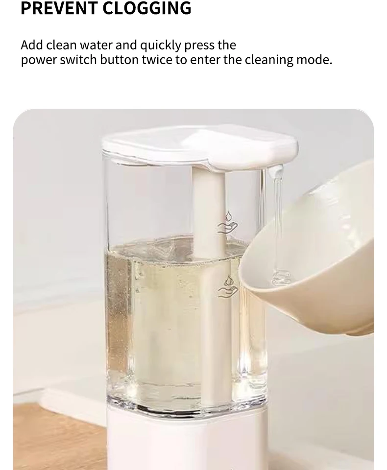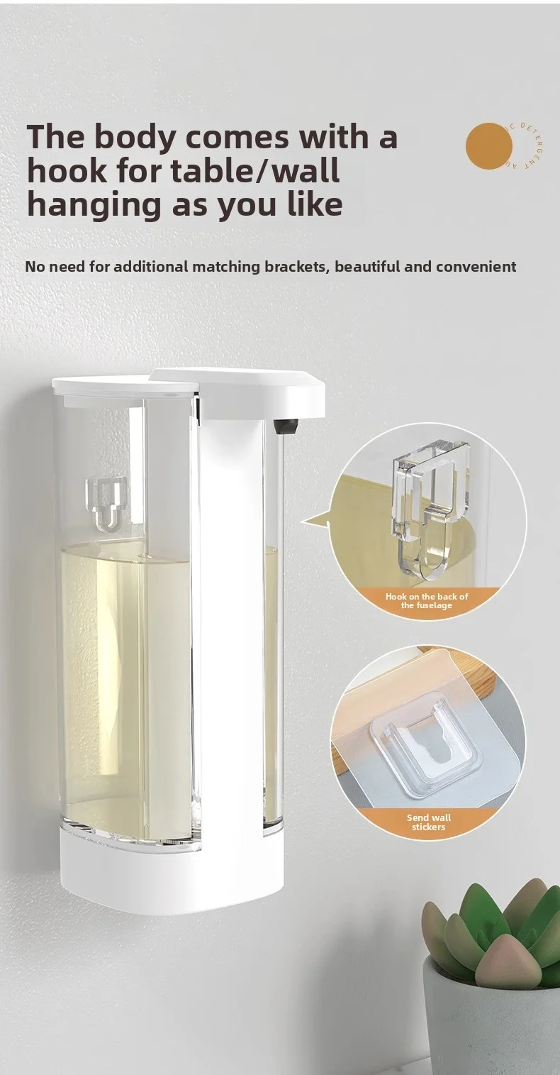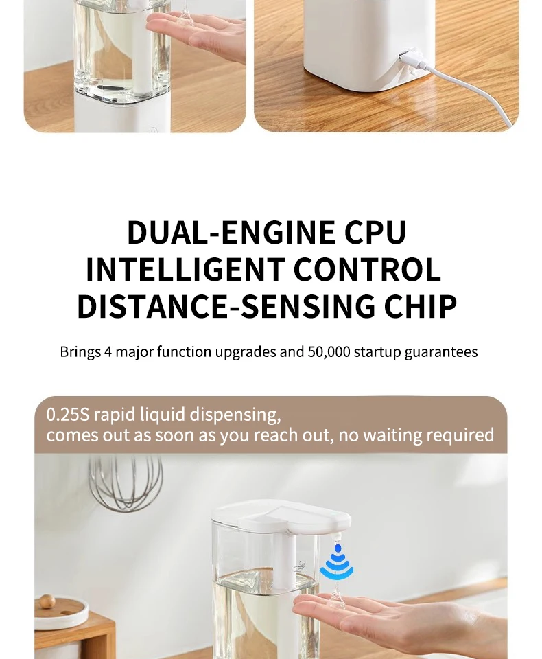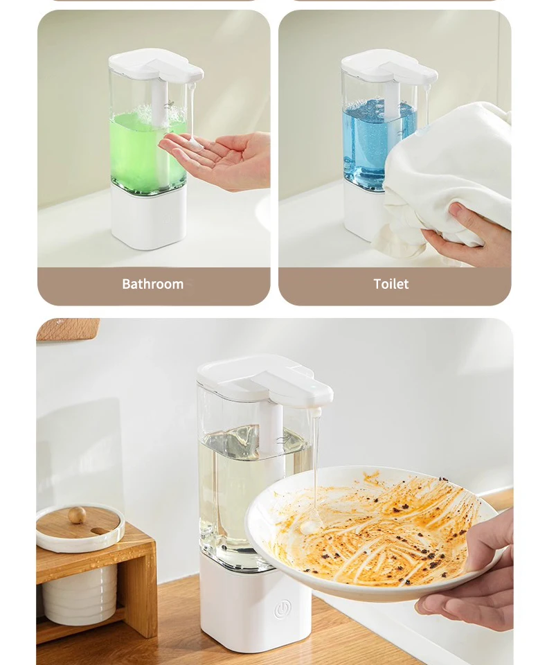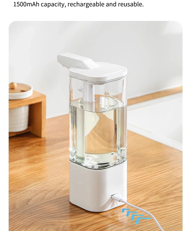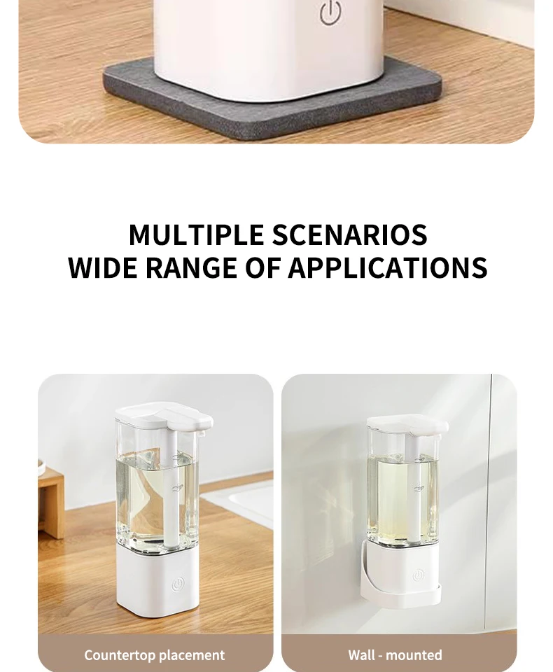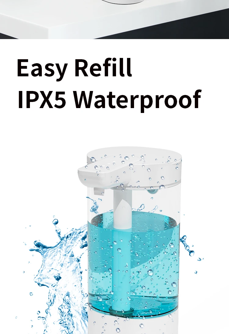 เครื่องจ่ายสบู่อัตโนมัติแบบกันน้ำ IPX5 แบบไม่ต้องสัมผัส ชาร์จไฟได้ผ่านพอร์ต Type C ติดผนัง สำหรับสบู่เหลวและน้ำยาล้างมือ