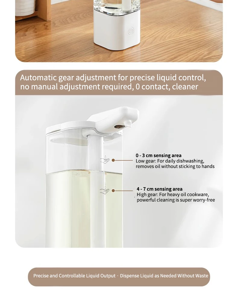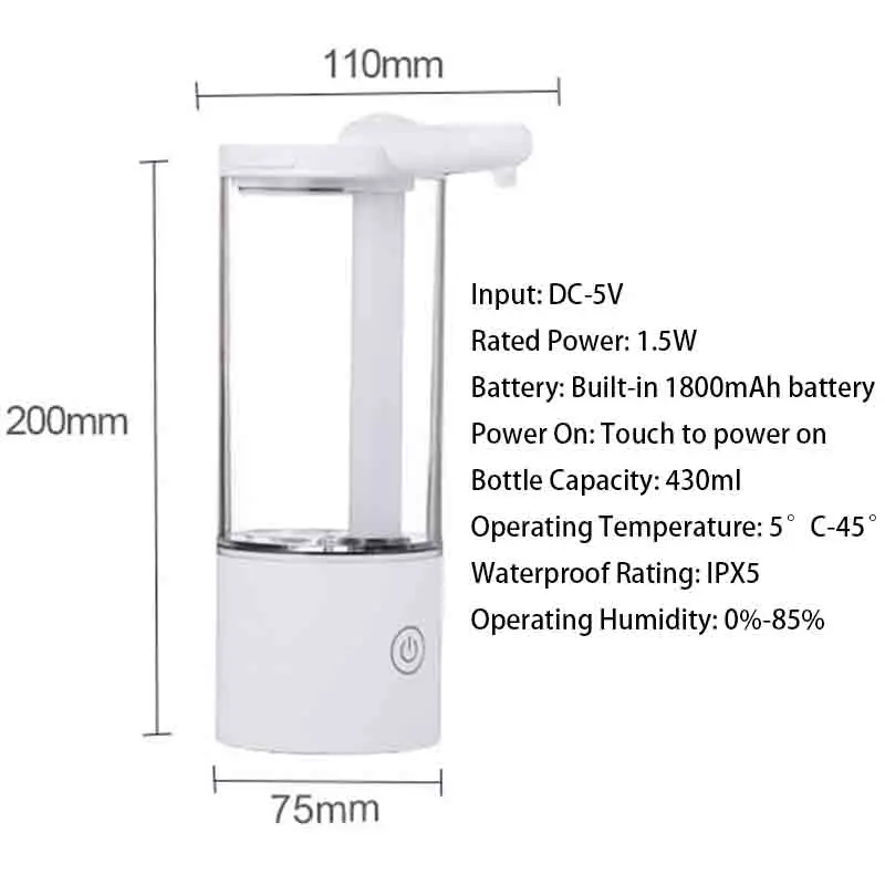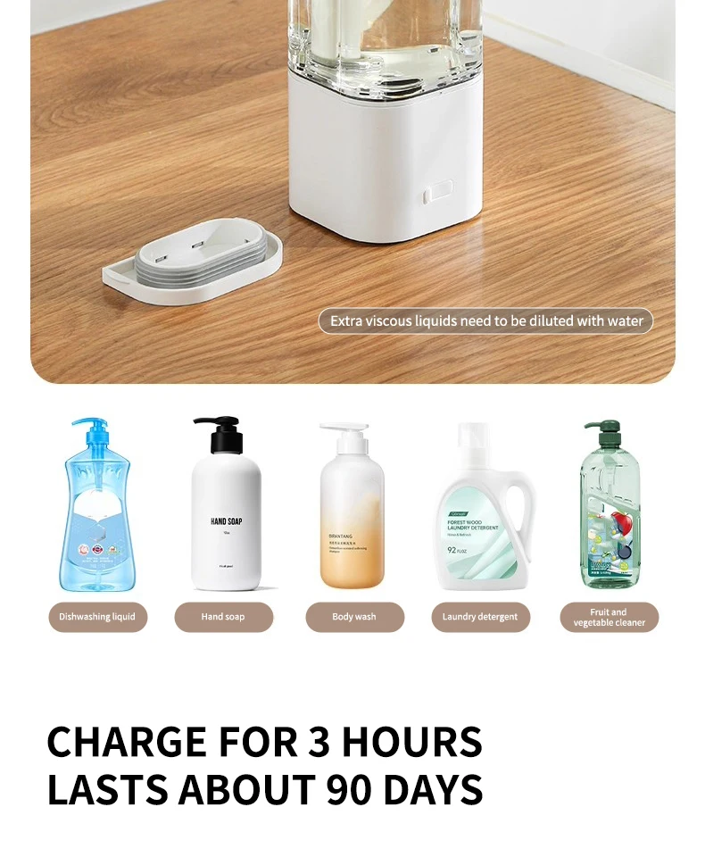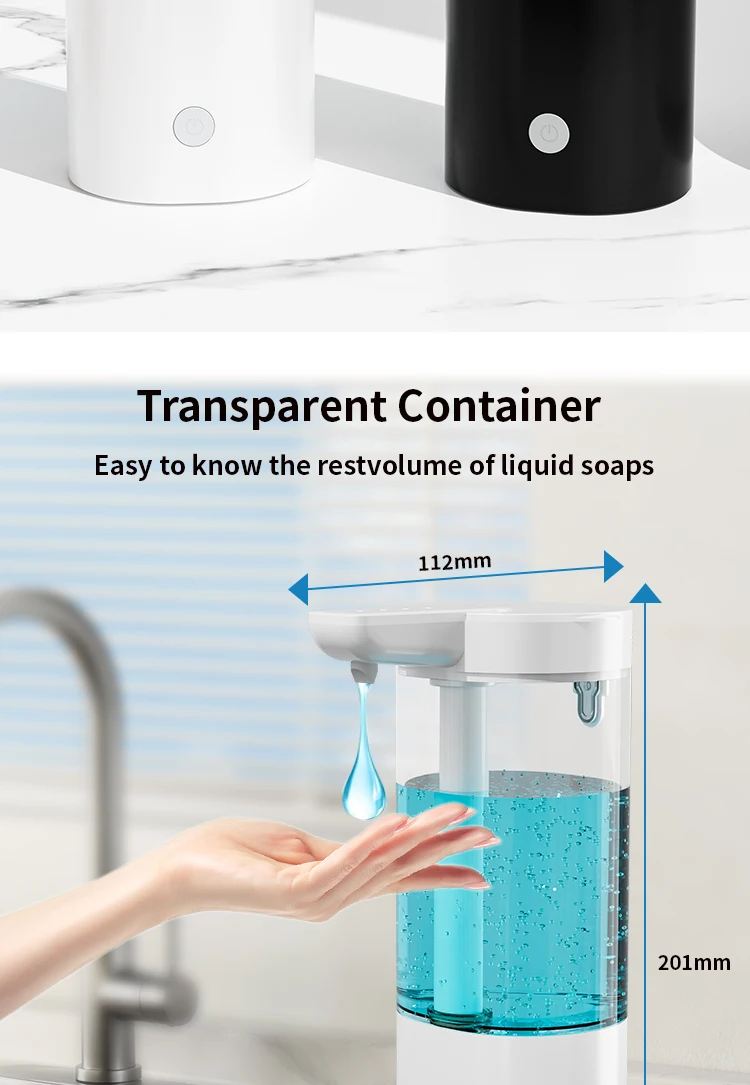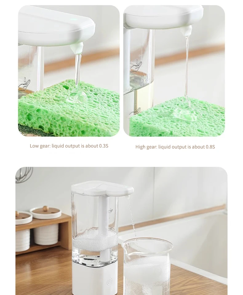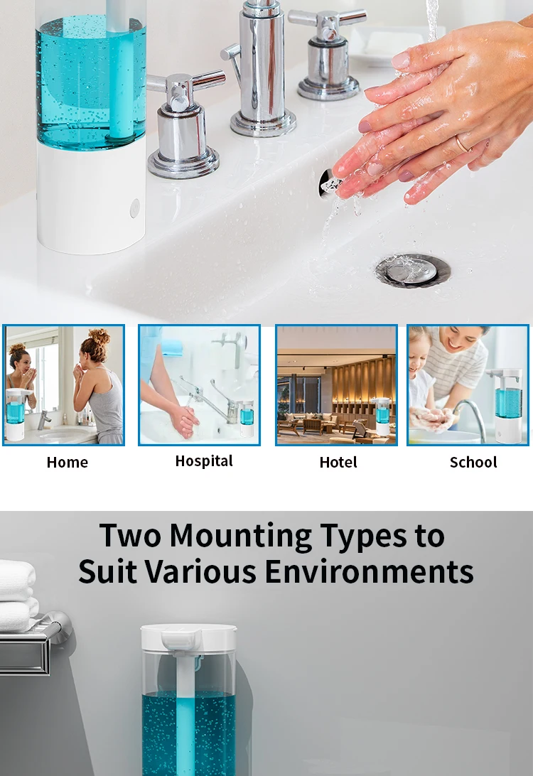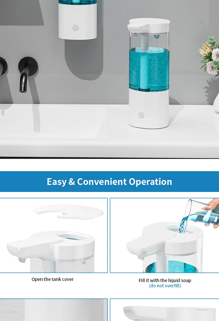 เครื่องจ่ายสบู่อัตโนมัติแบบกันน้ำ IPX5 แบบไม่ต้องสัมผัส ชาร์จไฟได้ผ่านพอร์ต Type C ติดผนัง สำหรับสบู่เหลวและน้ำยาล้างมือ