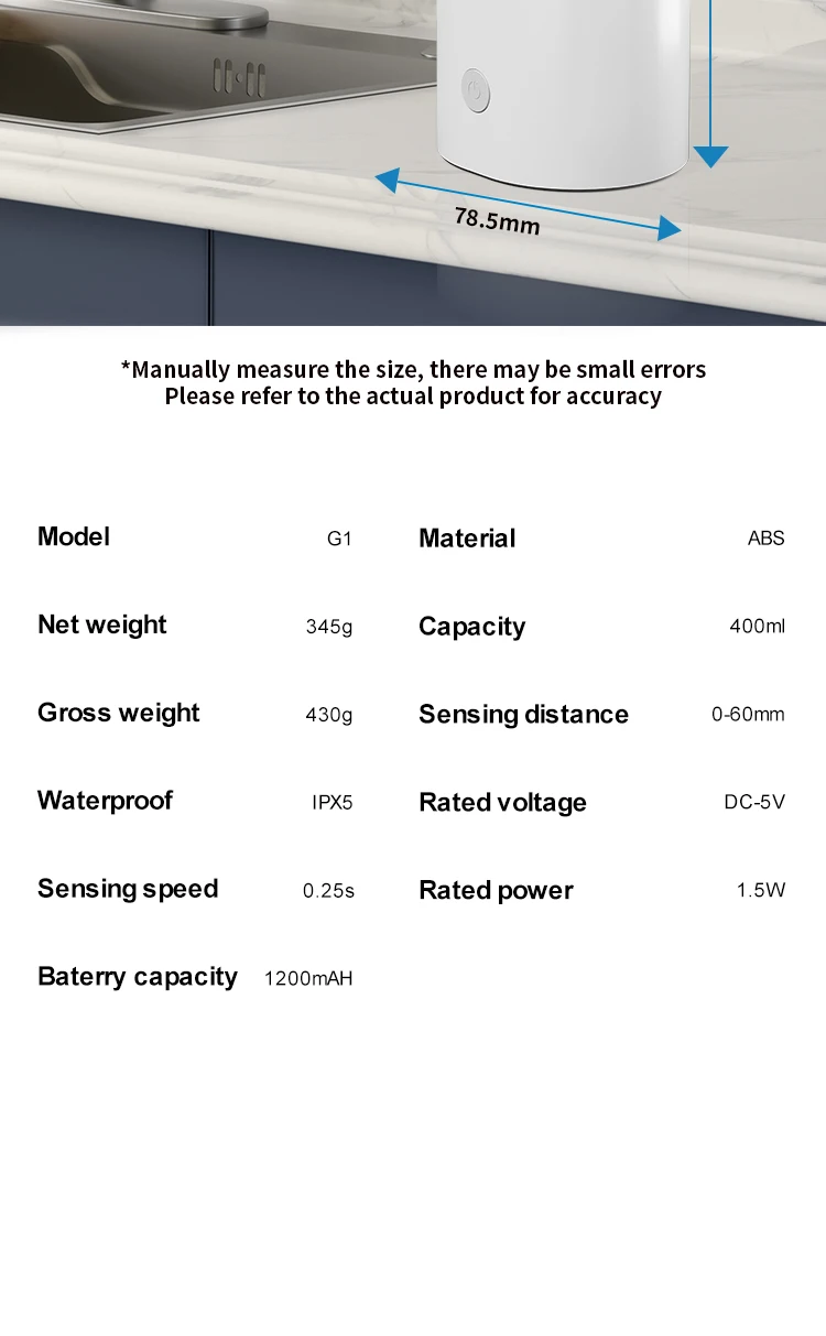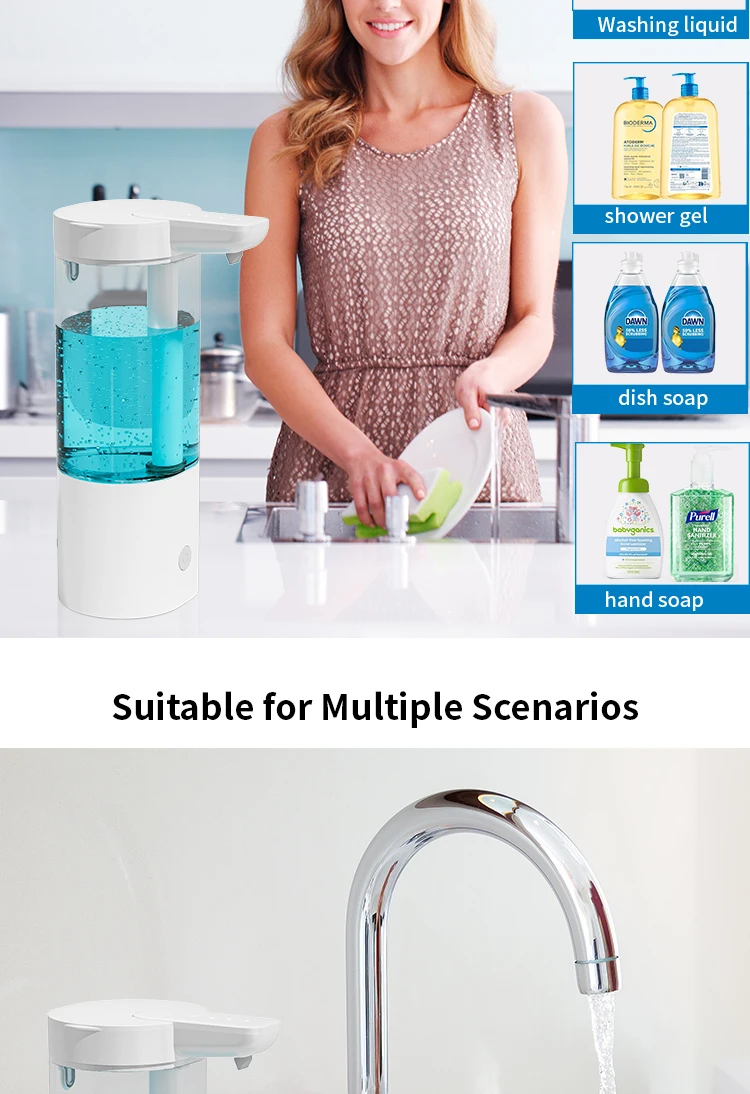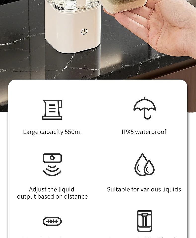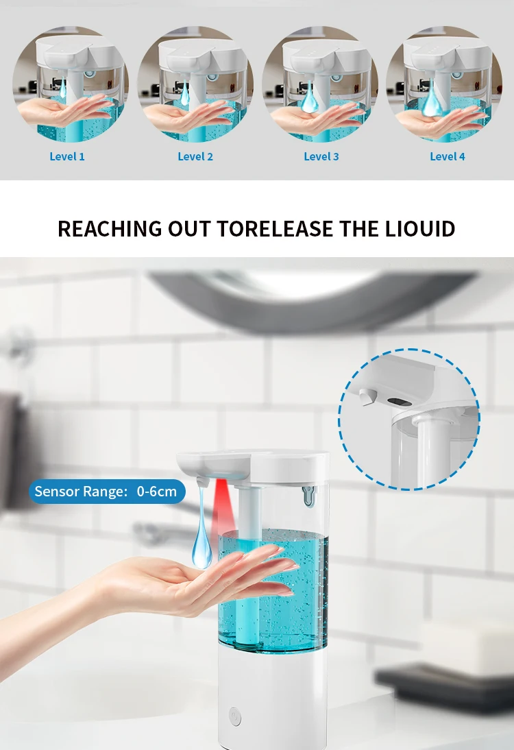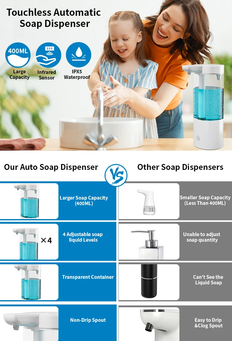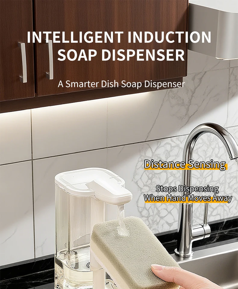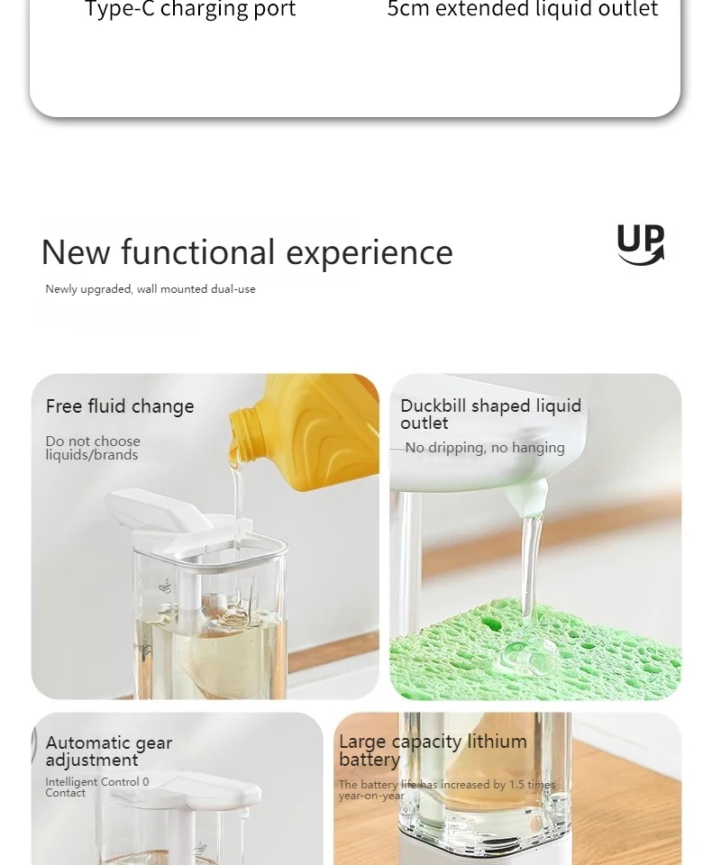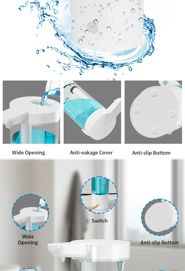 เครื่องจ่ายสบู่อัตโนมัติแบบกันน้ำ IPX5 แบบไม่ต้องสัมผัส ชาร์จไฟได้ผ่านพอร์ต Type C ติดผนัง สำหรับสบู่เหลวและน้ำยาล้างมือ