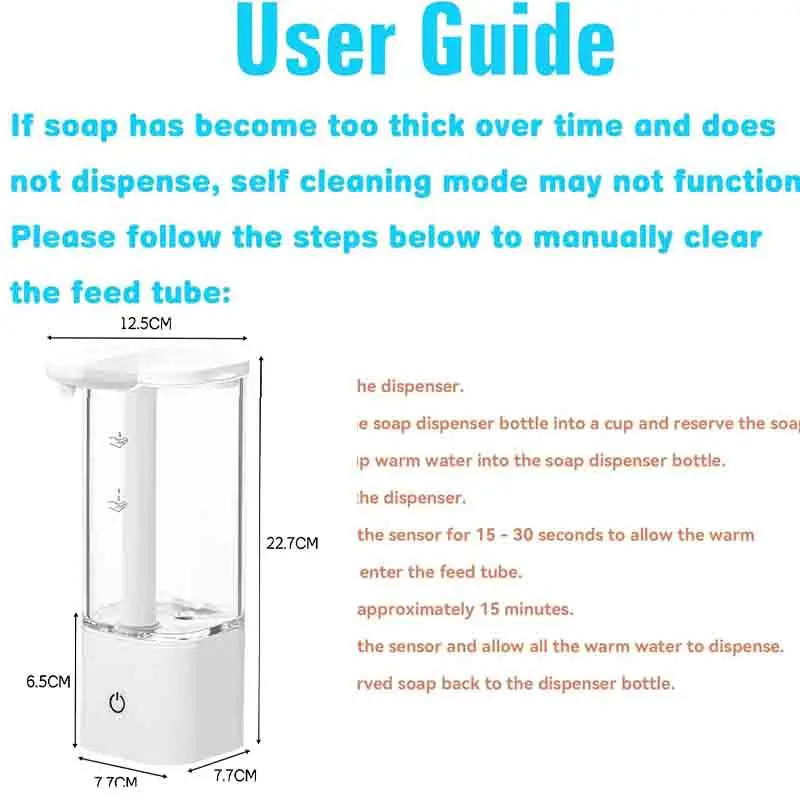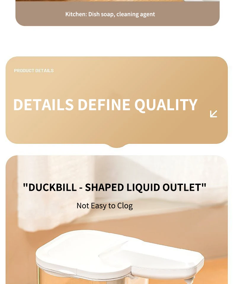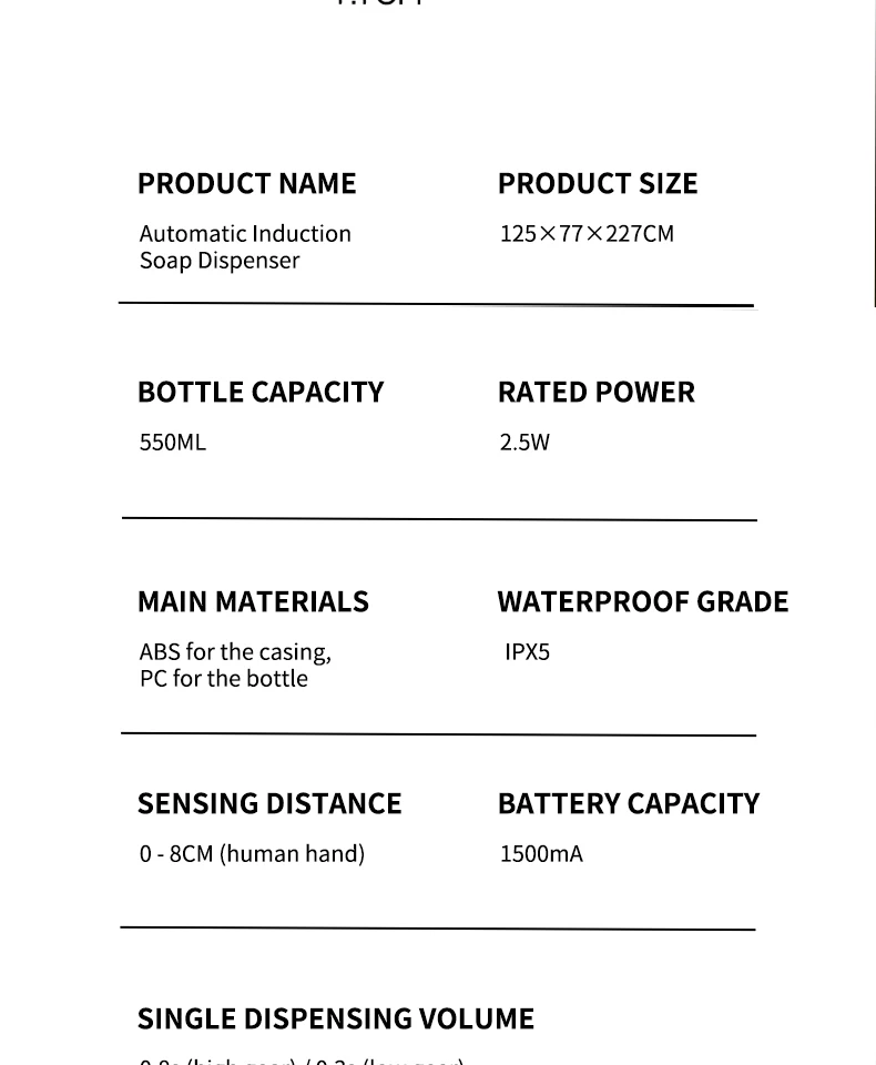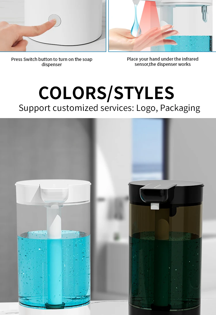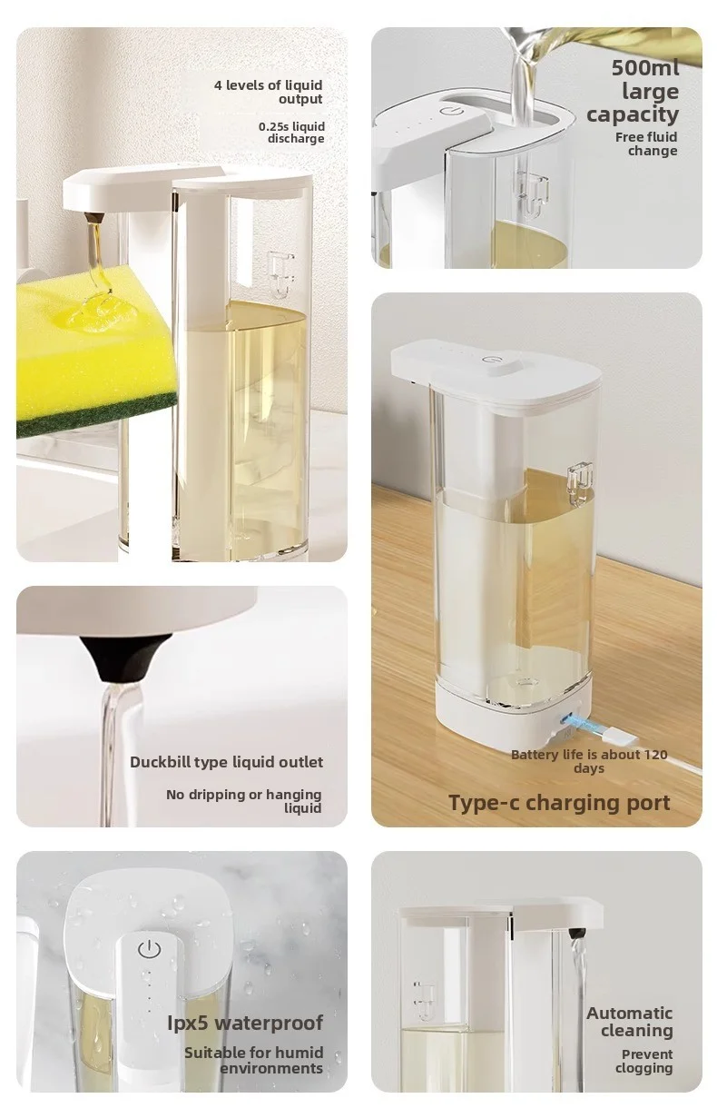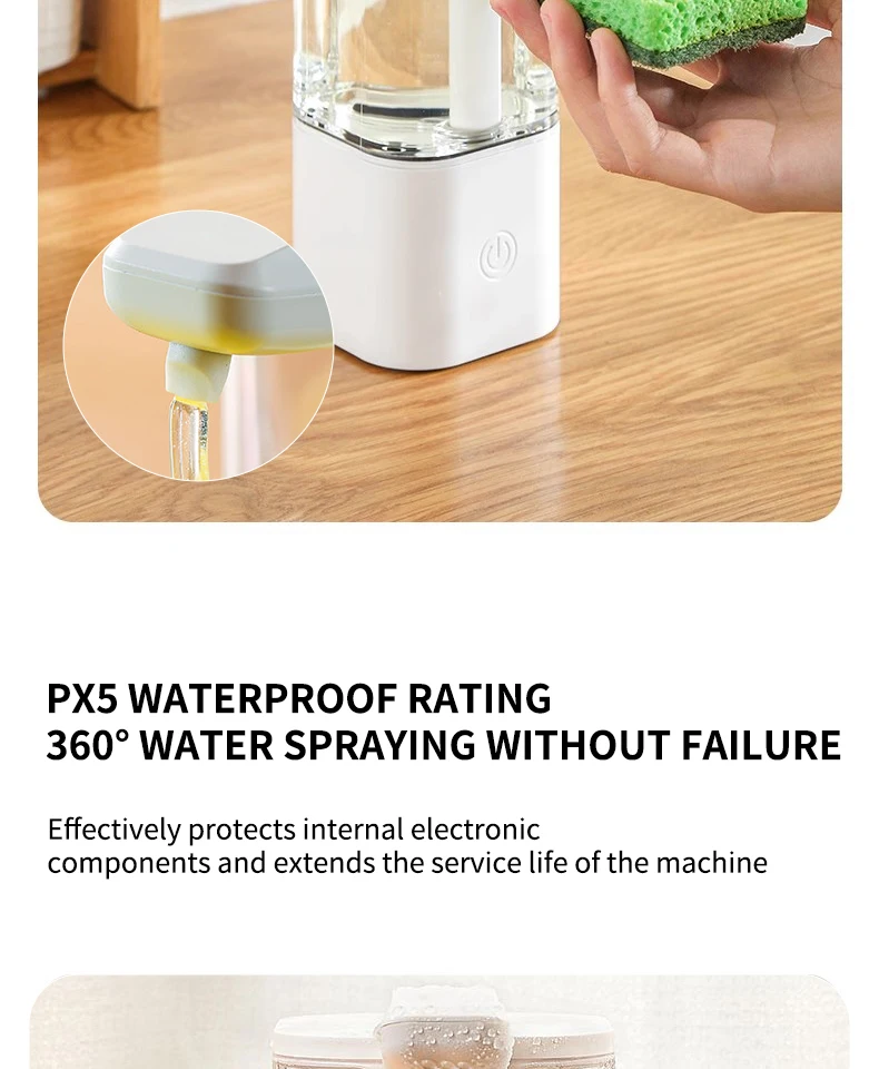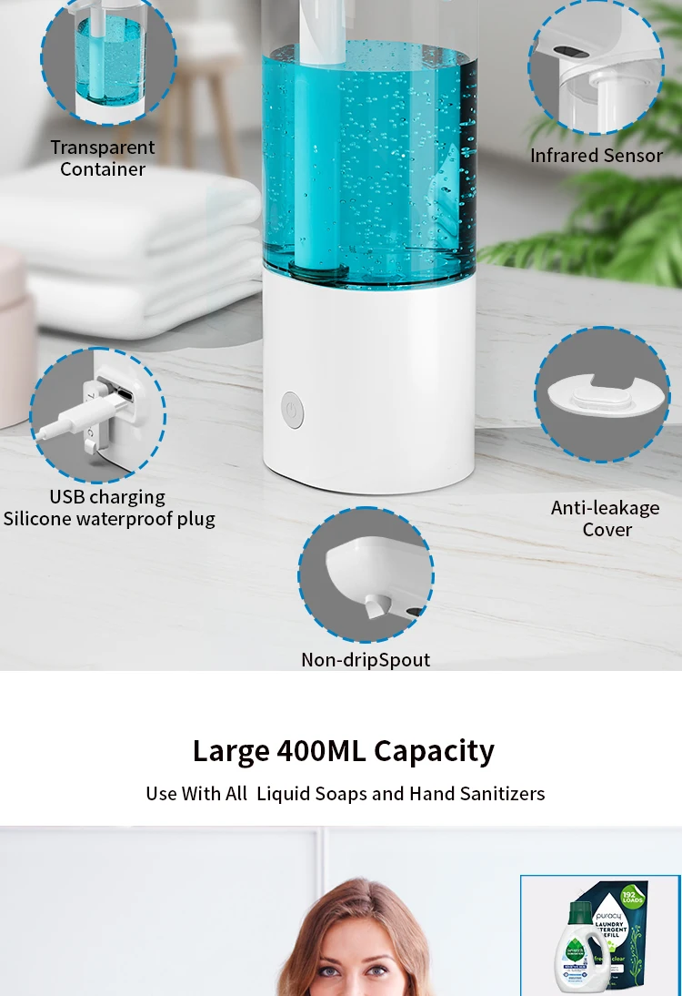 เครื่องจ่ายสบู่อัตโนมัติแบบกันน้ำ IPX5 แบบไม่ต้องสัมผัส ชาร์จไฟได้ผ่านพอร์ต Type C ติดผนัง สำหรับสบู่เหลวและน้ำยาล้างมือ