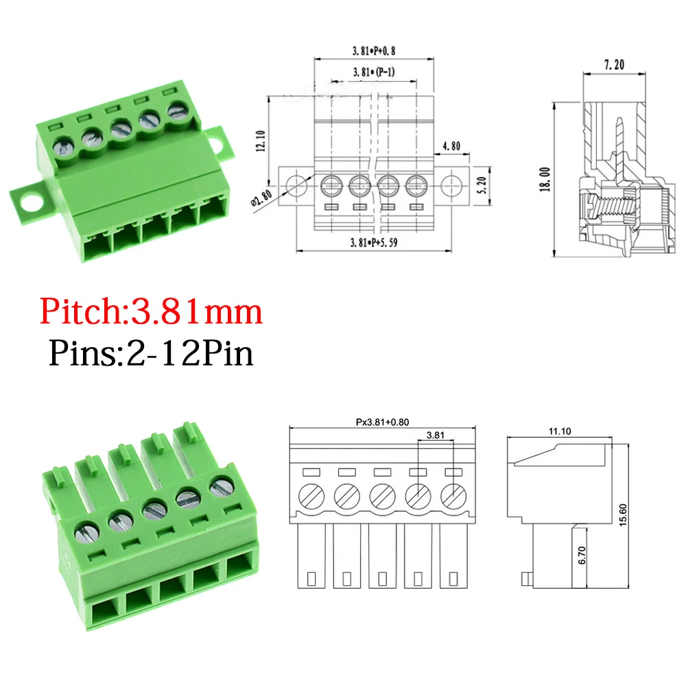 1 ชุด Solderless Docking ประเภท 15EDG 3.81 มม.ขั้วต่อสกรู PCB Plug-in ประเภท 15EDGRKC 3.81 สีเขียว Terminal BLOCK