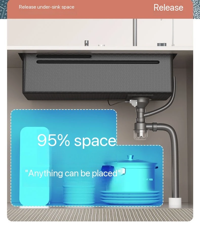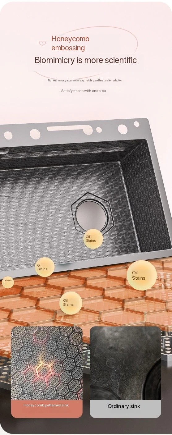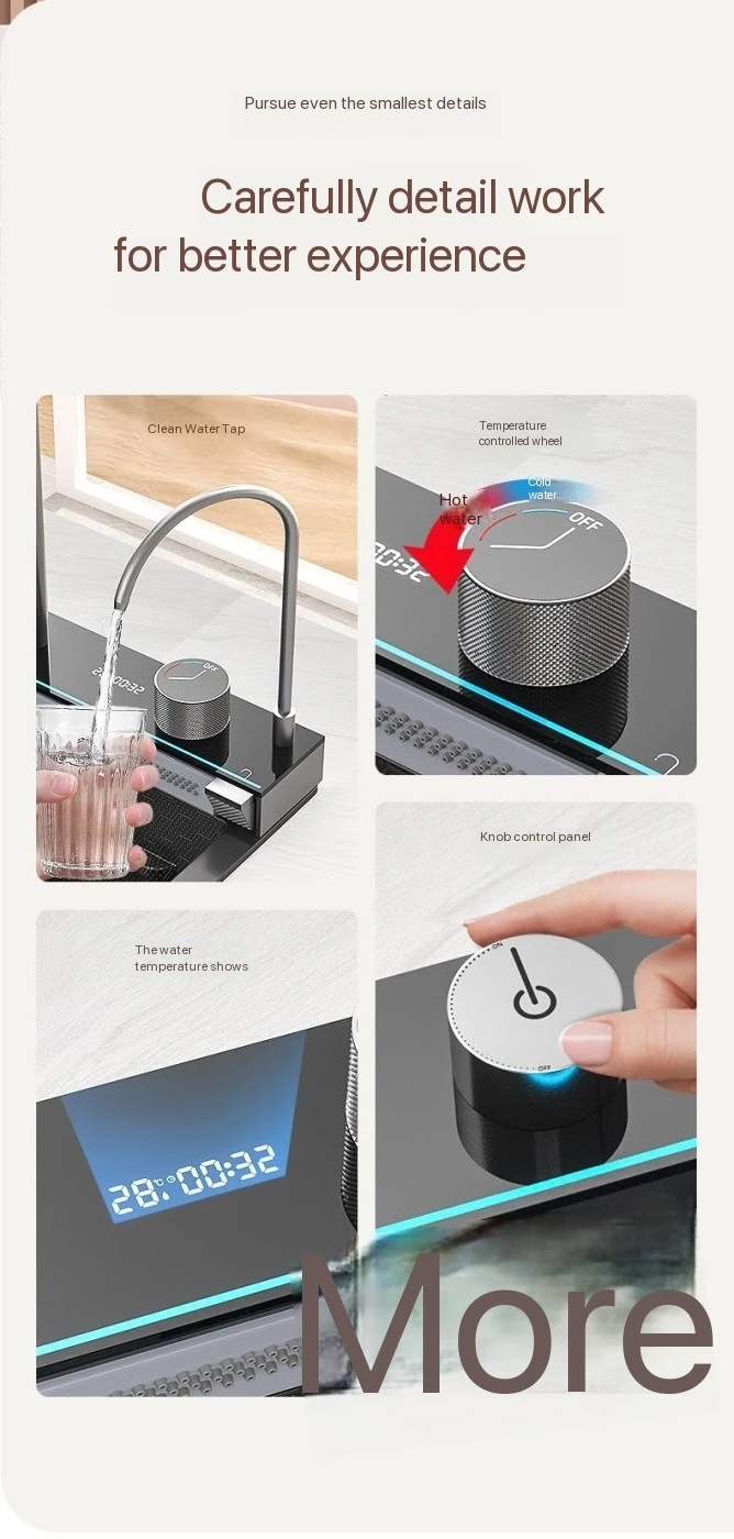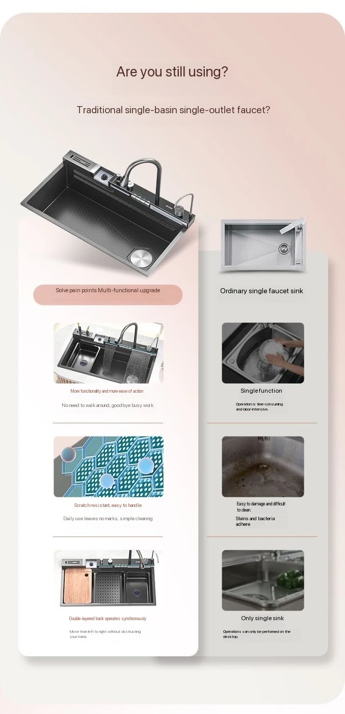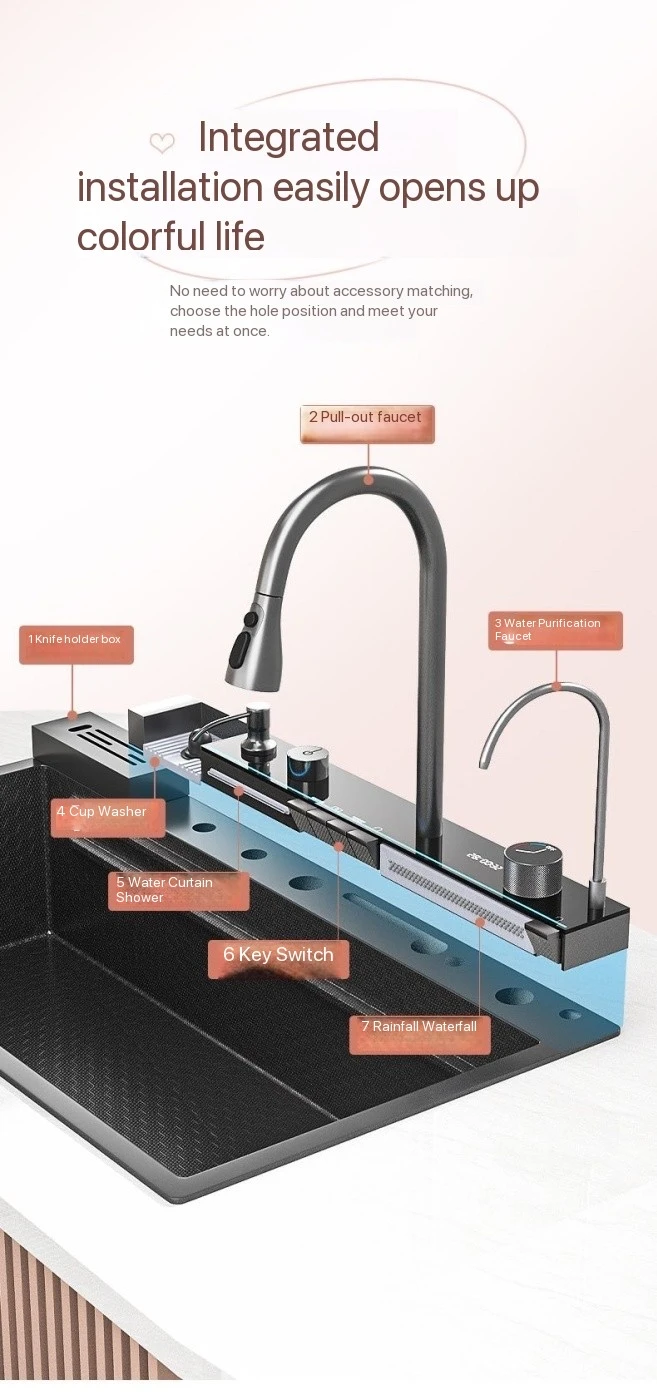อ่างล้างจานแบบน้ำตกในตัว เทคโนโลยีรังผึ้ง จอแสดงผลดิจิตอลขนาดใหญ่ สแตนเลส เครื่องจ่ายสบู่เหลว เครื่องล้างถ้วย