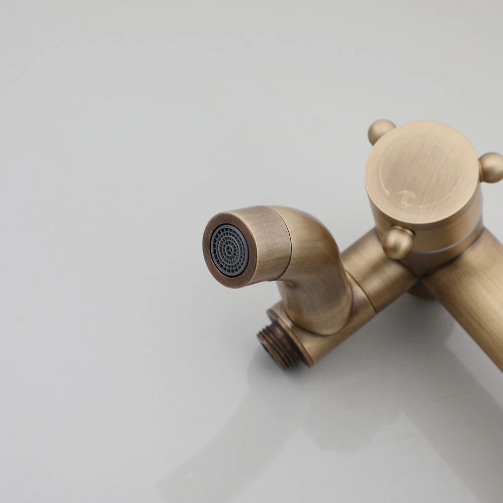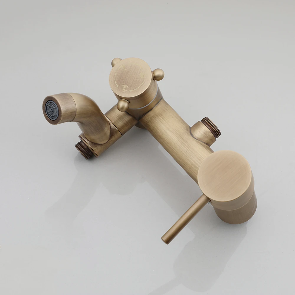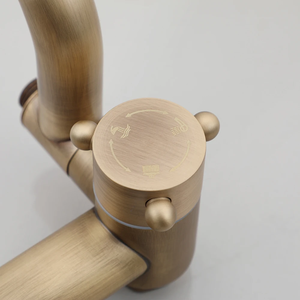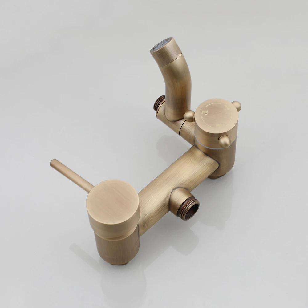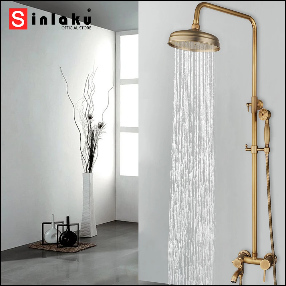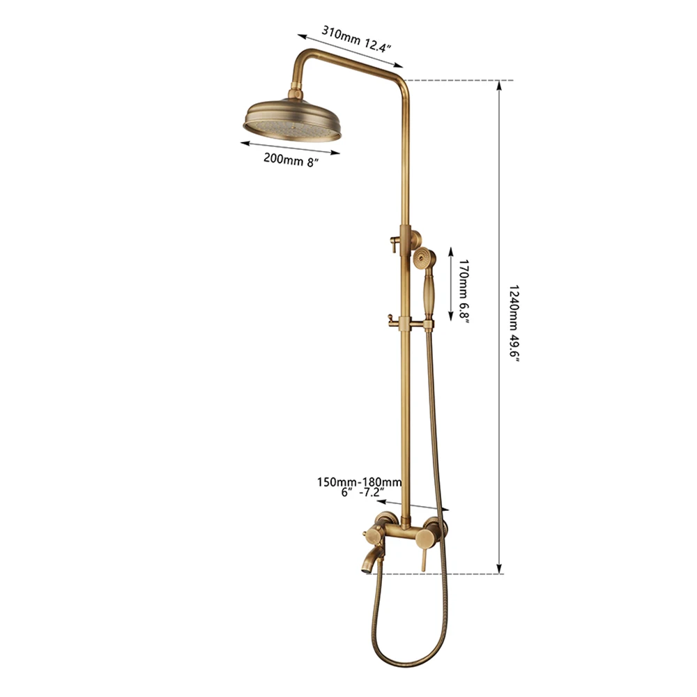 Sinlaku ชุดก๊อกน้ำฝักบัวห้องน้ำทองเหลืองโบราณ, ฝักบัวติดผนังหัวกลมพร้อมมือและหัวฝักบัวก๊อกผสมน้ำด้านล่าง