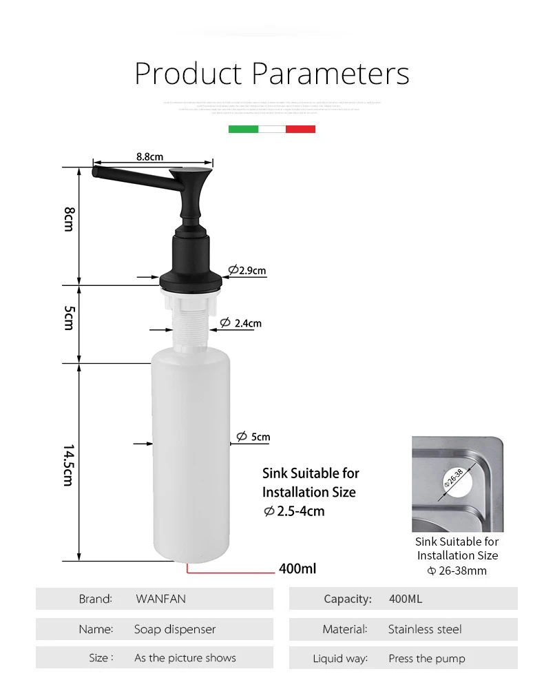 400มล. ใหม่แปรงนิกเกิลเครื่องจ่ายสบู่เหลวด้วยมือโลหะสแตนเลสขวดอ่างล้างจานเครื่องจ่ายสบู่เหลวของเหลวปั๊มโลหะ2302