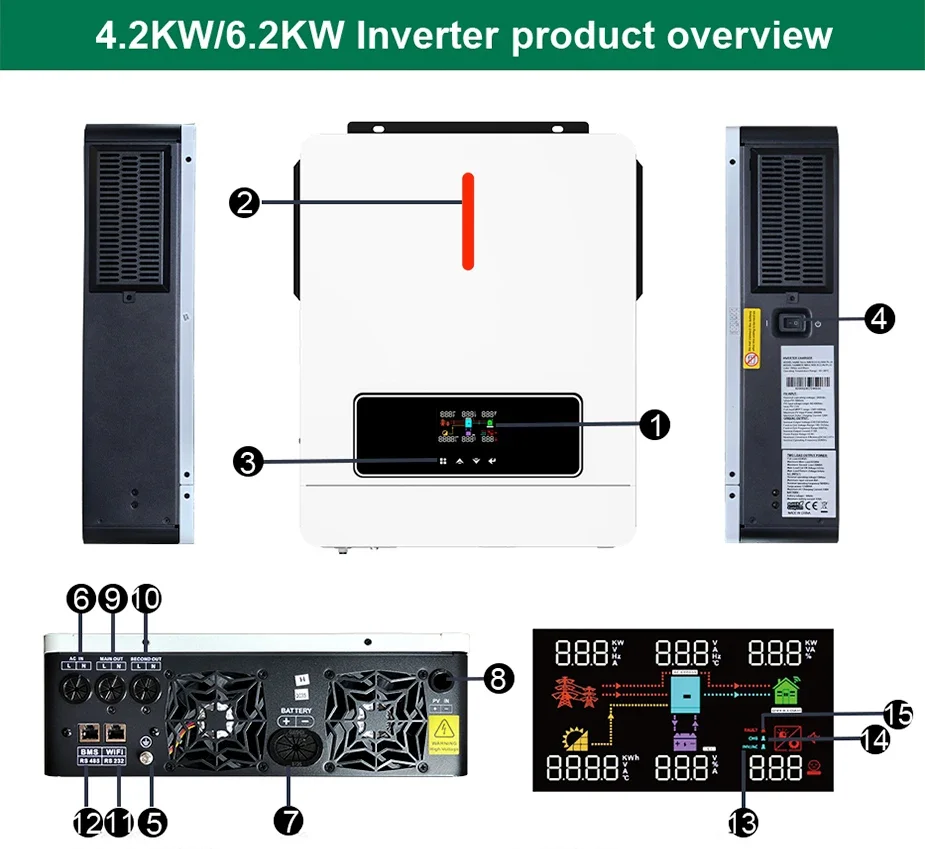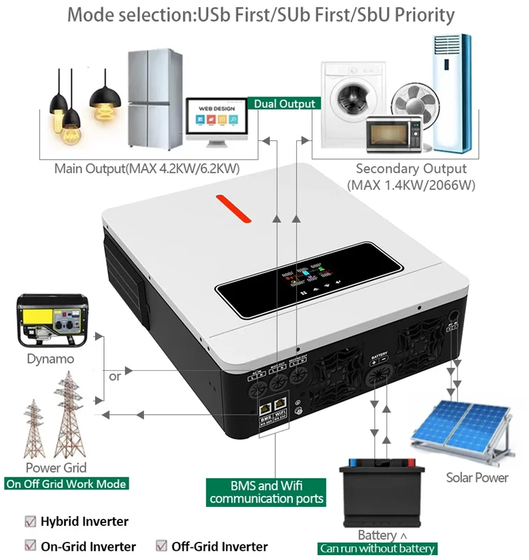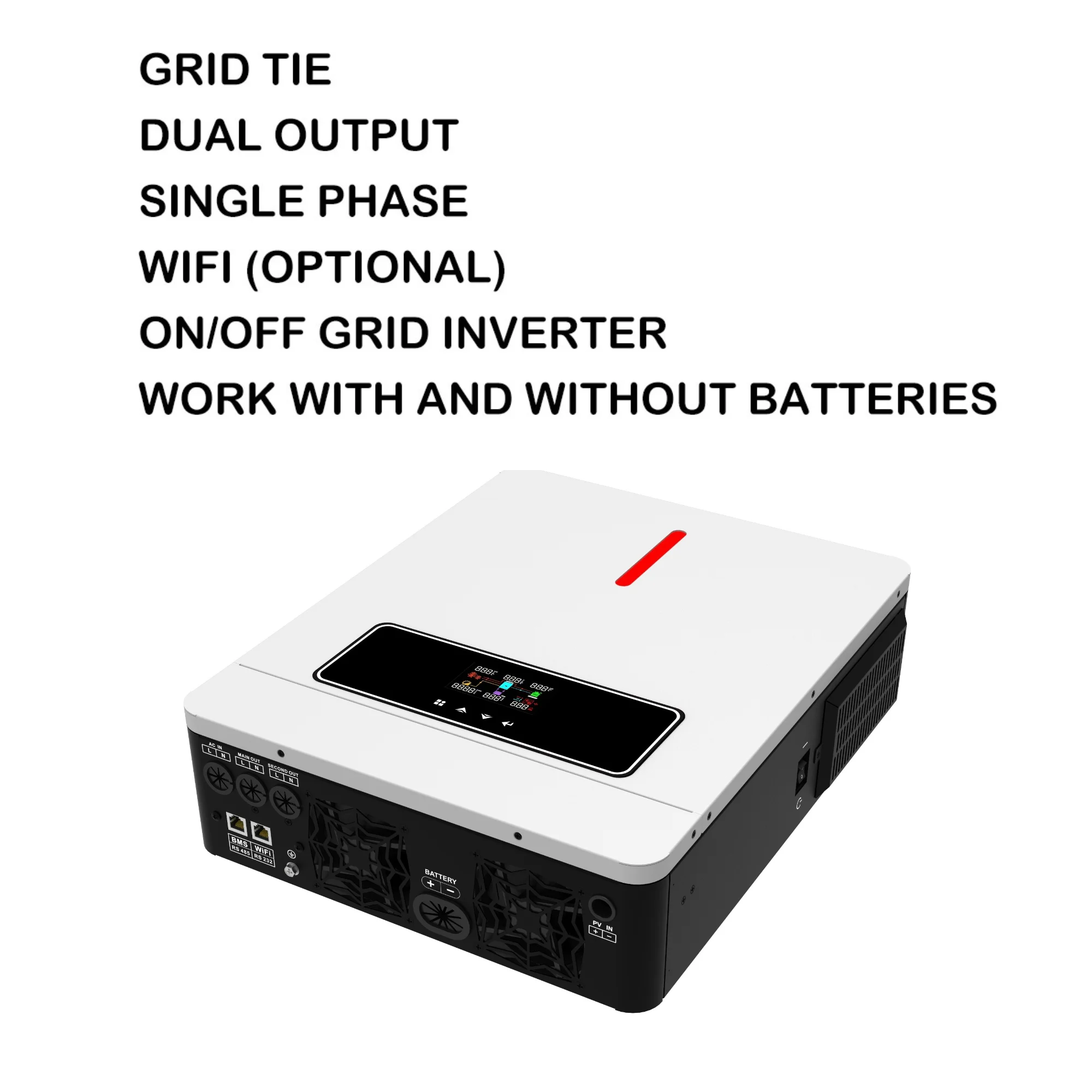 it is an off-grid hybrid inverter that works without batteries. This inverter is a high frequency inverter,Lead-acid batteries, gel batteries, and lithium batteries can be used.
